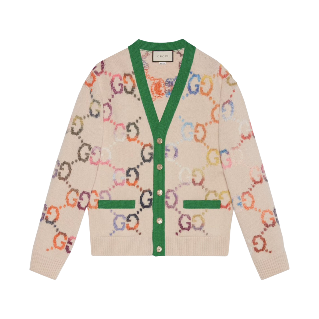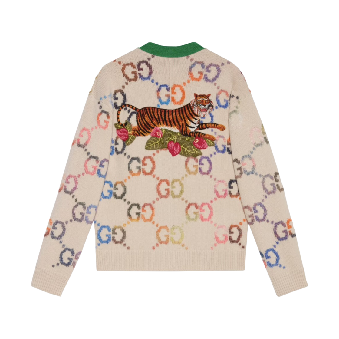 Gucci Tiger GG Jacquard Wool Cardigan Ivory