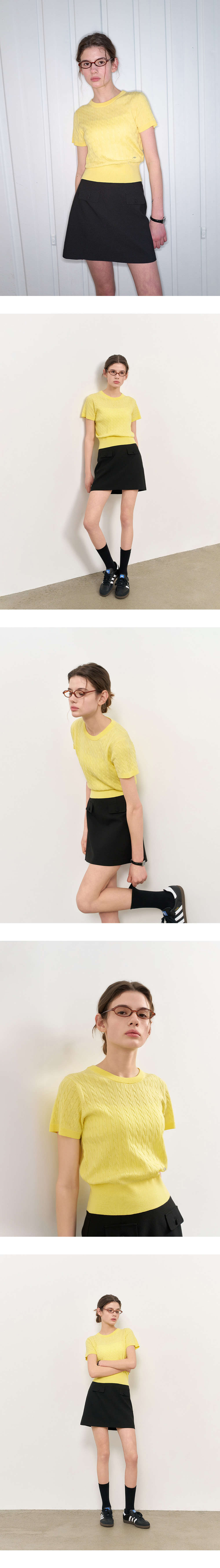제너럴아이디어 우먼 텐셀 케이블 하프 니트 레몬