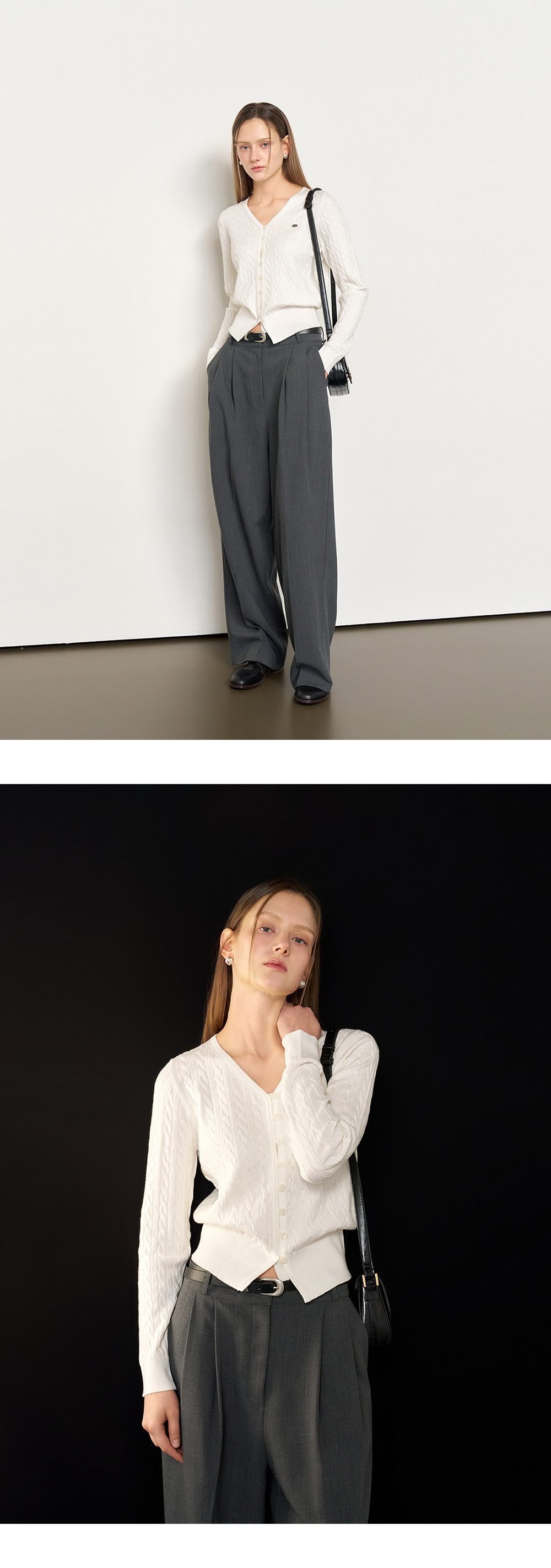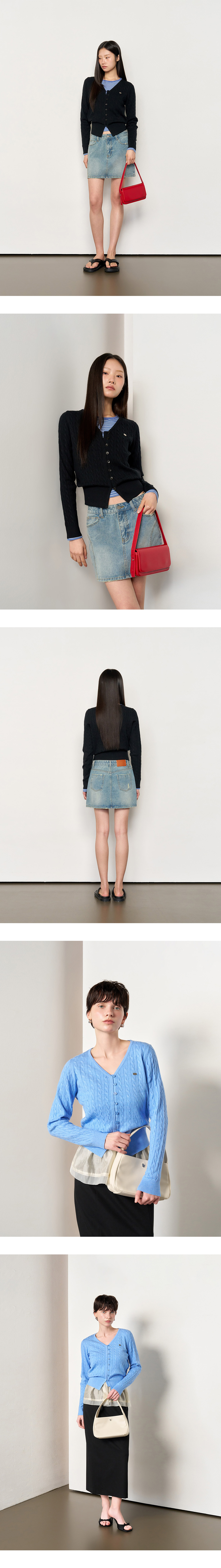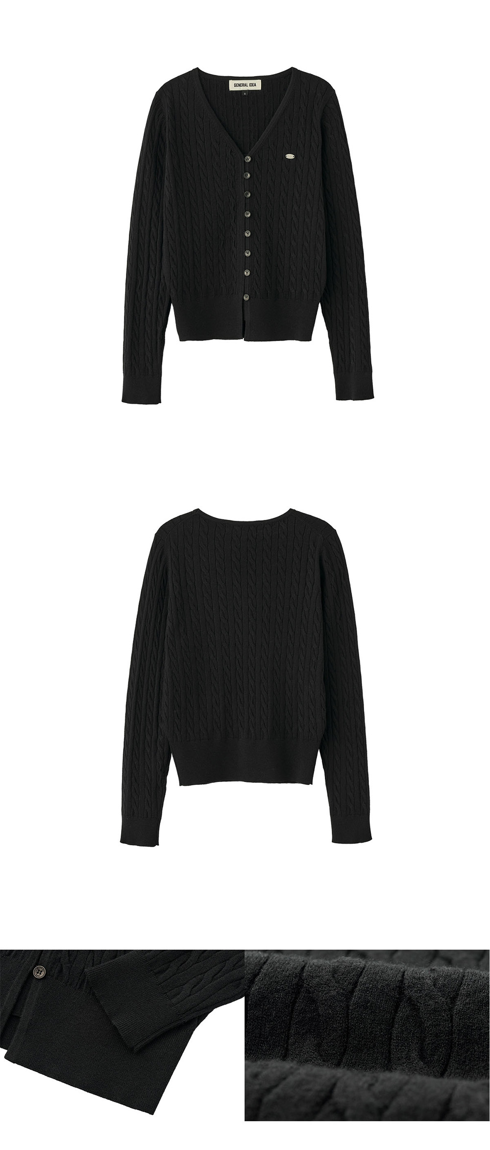 제너럴아이디어 우먼 시그니처 브이넥 케이블 가디건 블랙