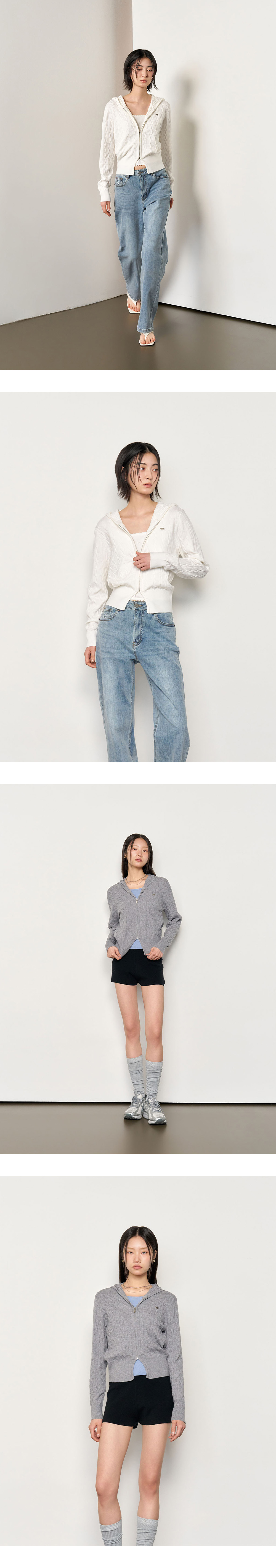 제너럴아이디어 우먼 시그니처 케이블 후드 집업 핑크