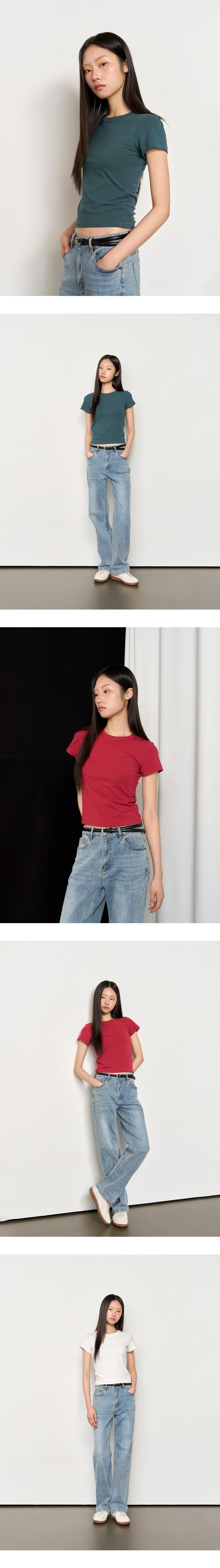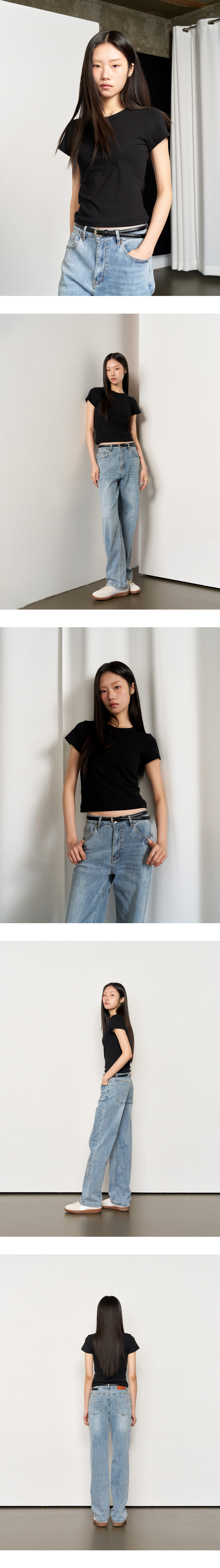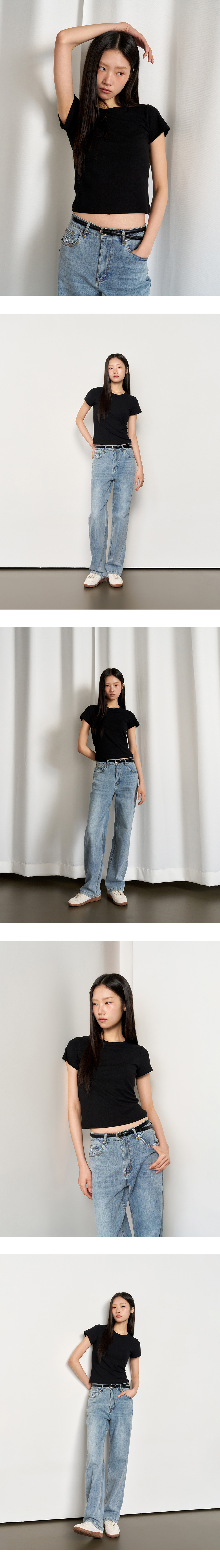 제너럴아이디어 우먼 슬림 크루넥 반팔티 블랙