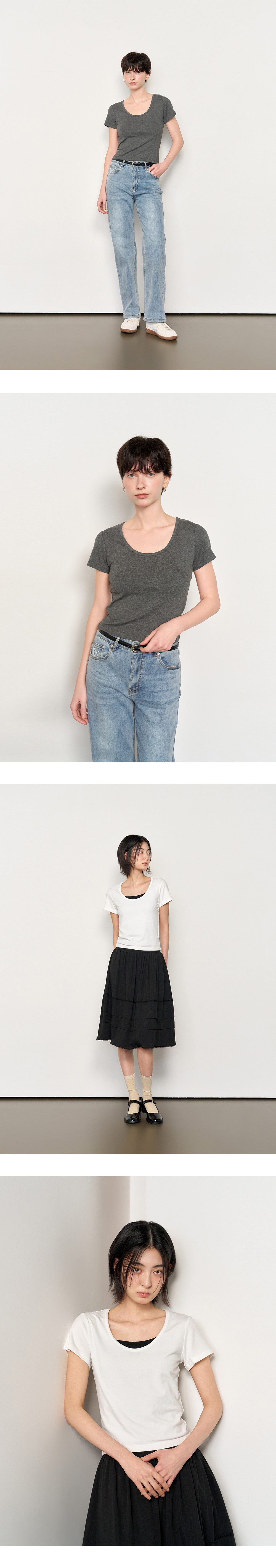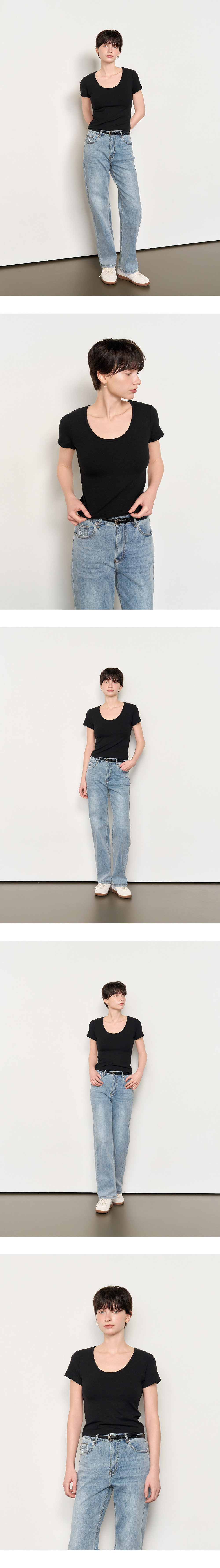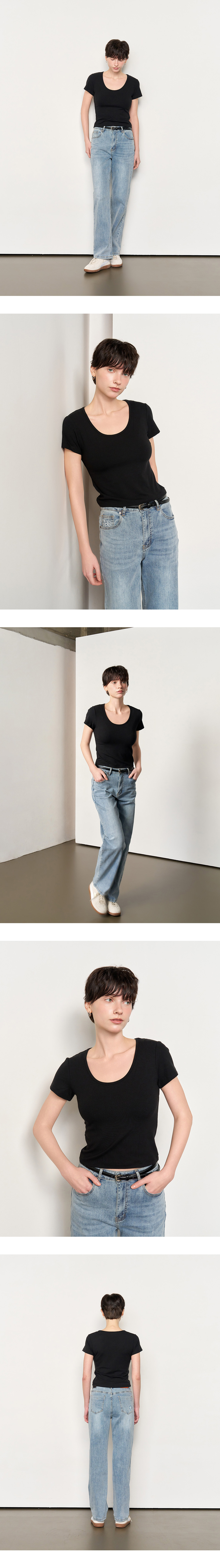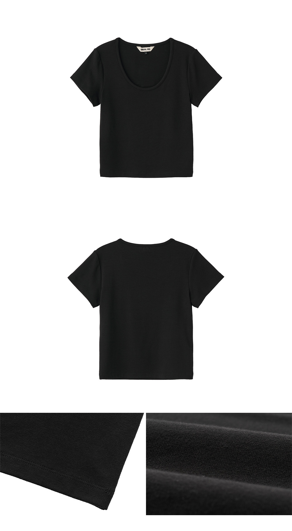 제너럴아이디어 우먼 슬림 U넥 반팔티 블랙