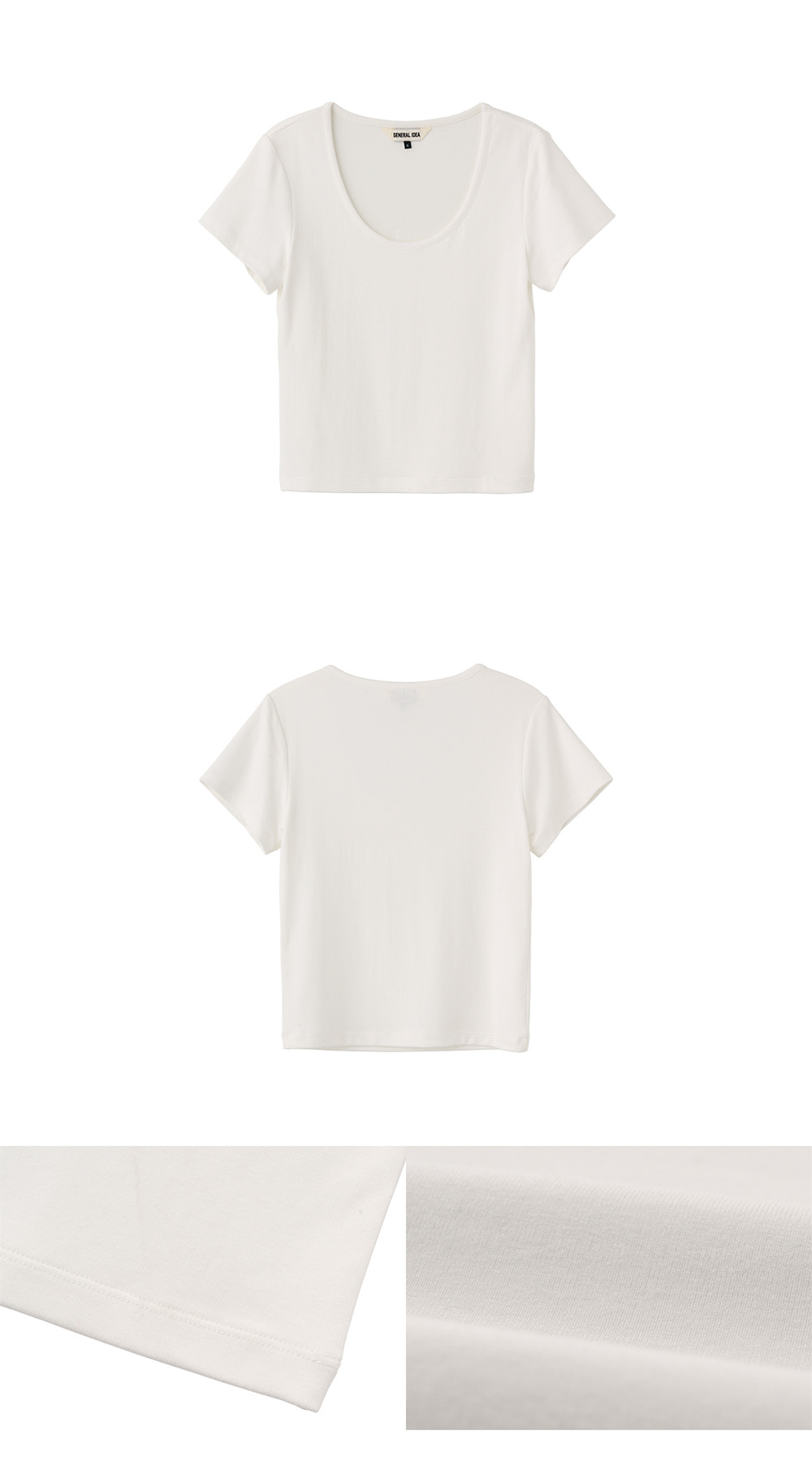 제너럴아이디어 우먼 슬림 U넥 반팔티 화이트