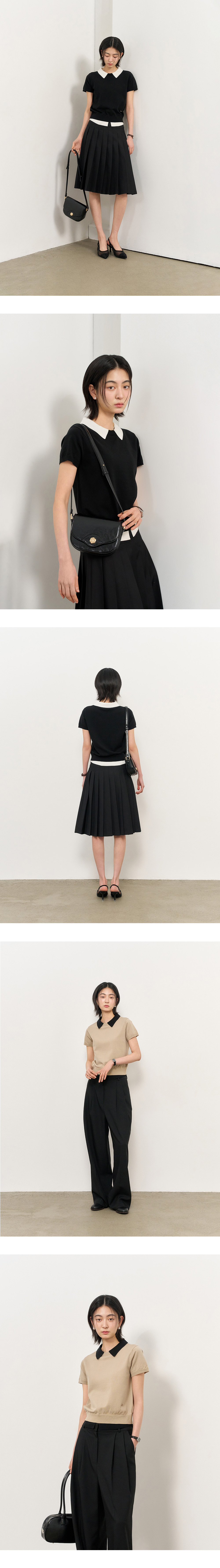 제너럴아이디어 우먼 텐셀 카라 레이어드 하프 풀오버 블랙