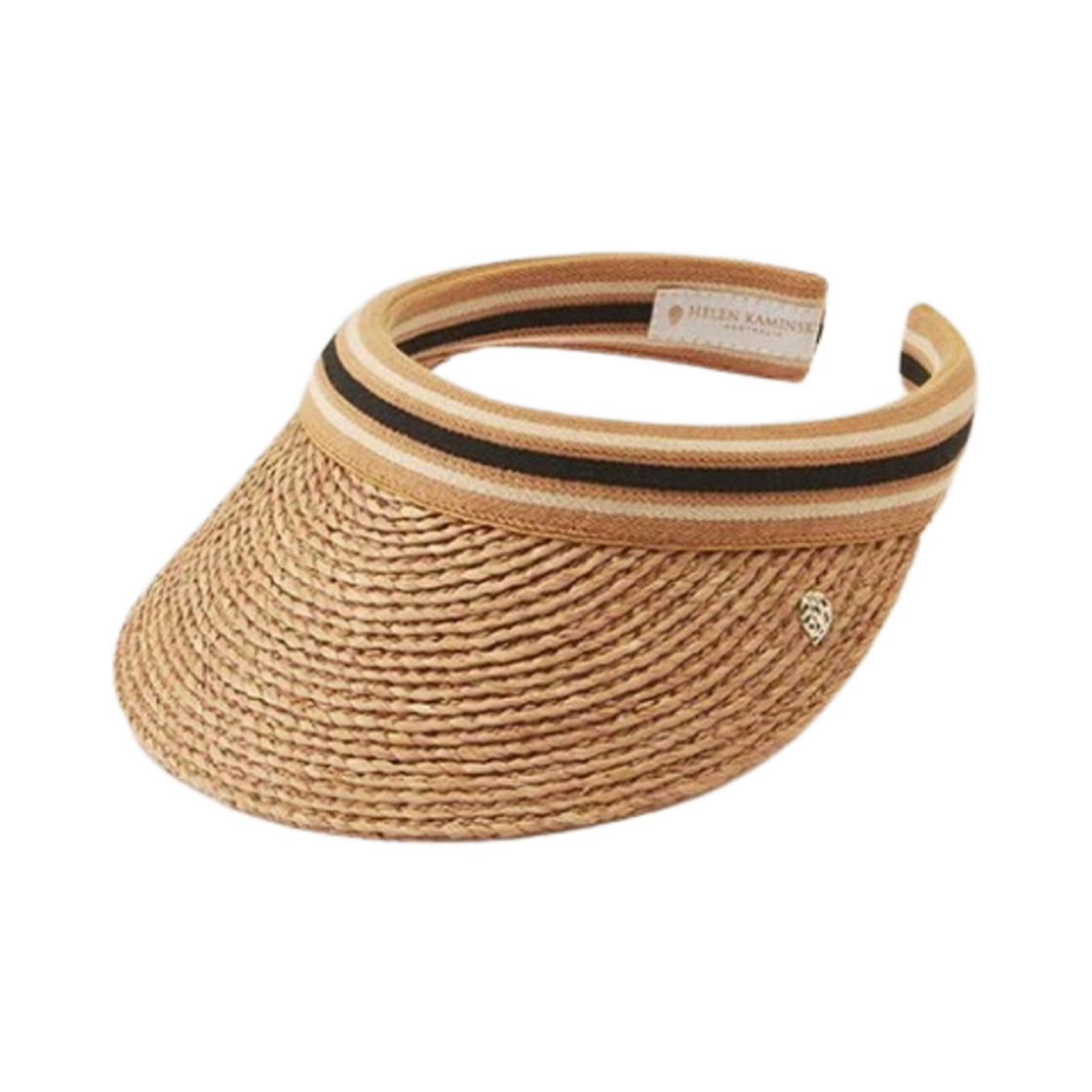 (W) Helen Kaminski Bianca 8 Stripe Visor Nougat Black Stripe