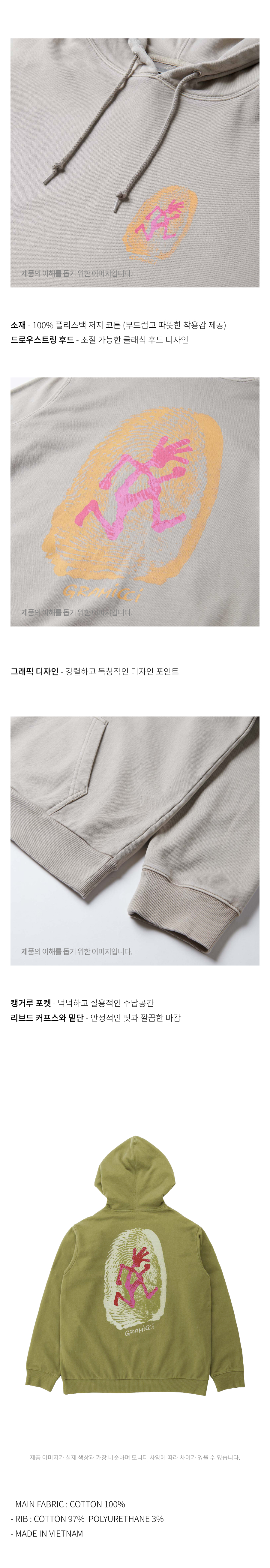 그라미치 떰프린트 후디드 스웻셔츠 피스타치오 피그먼트