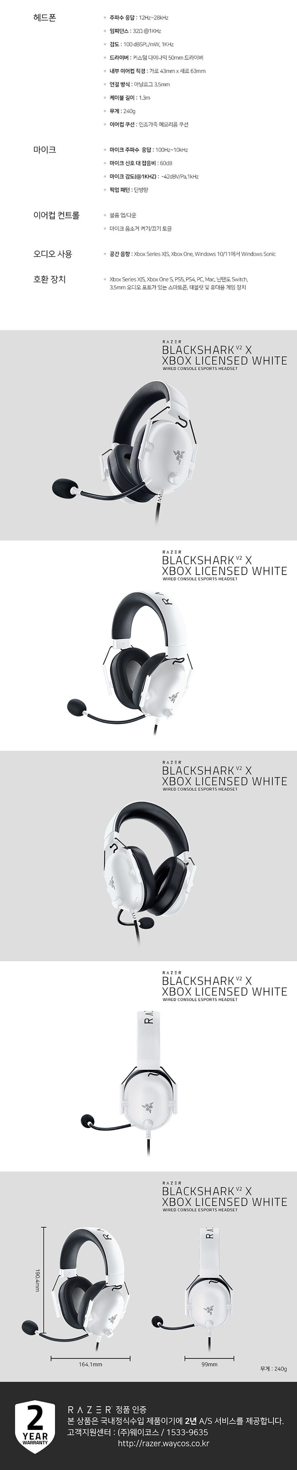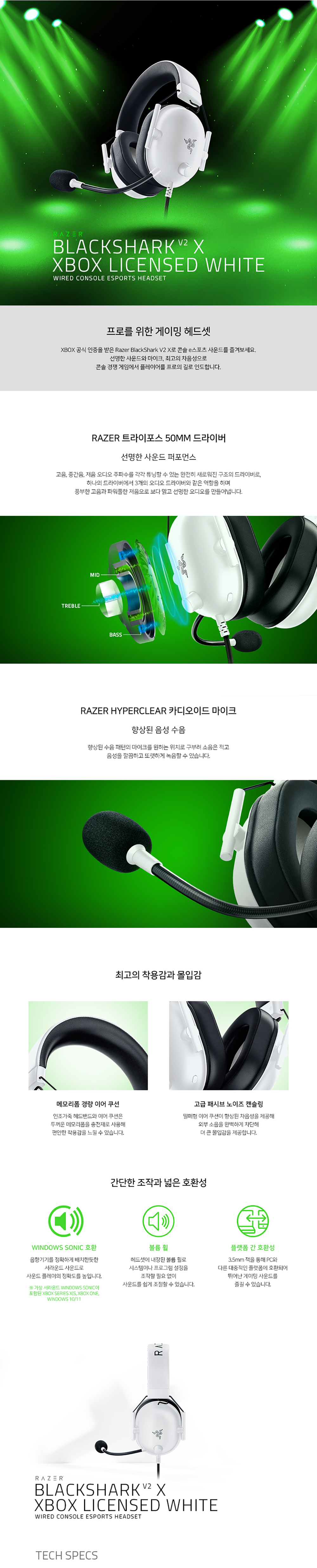 레이저 블랙샤크 V2 X XBOX공식라이센스 PC호환 게이밍 헤드셋 화이트