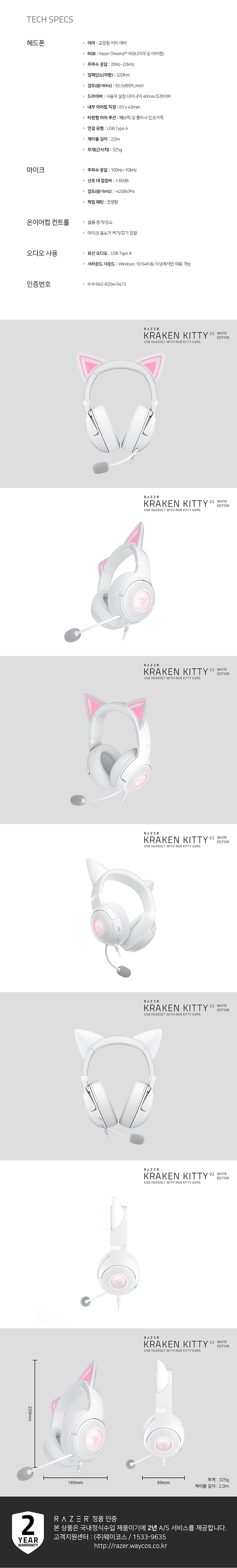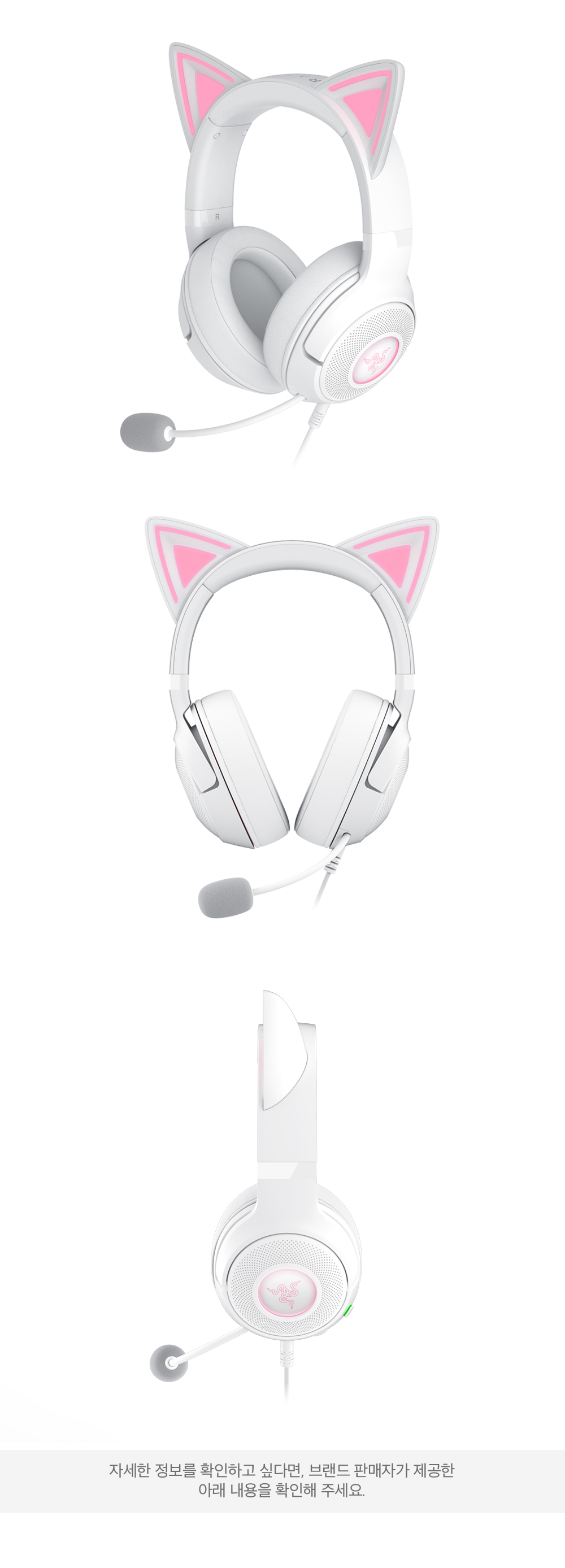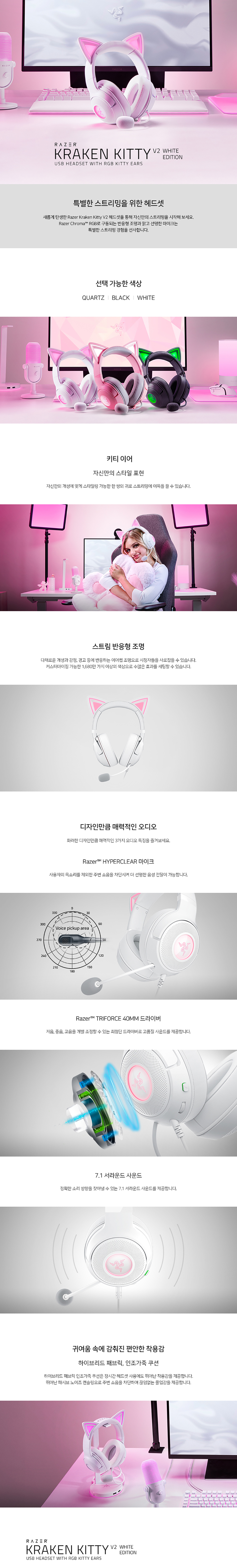 레이저 크라켄 키티 V2 유선 게이밍 RGB 헤드셋 화이트