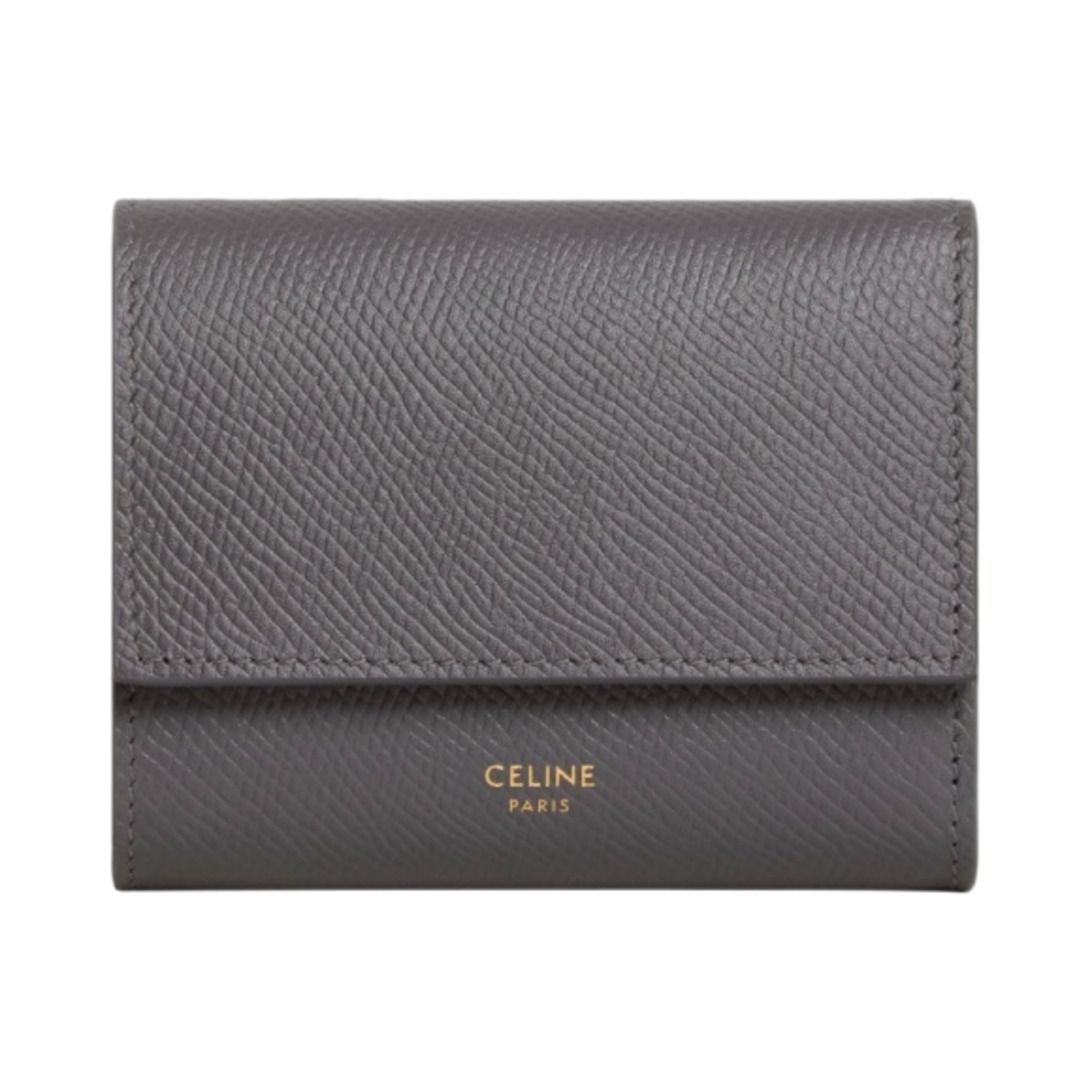 Celine Small Tri-Fold Wallet in Grained Calfskin Grey
