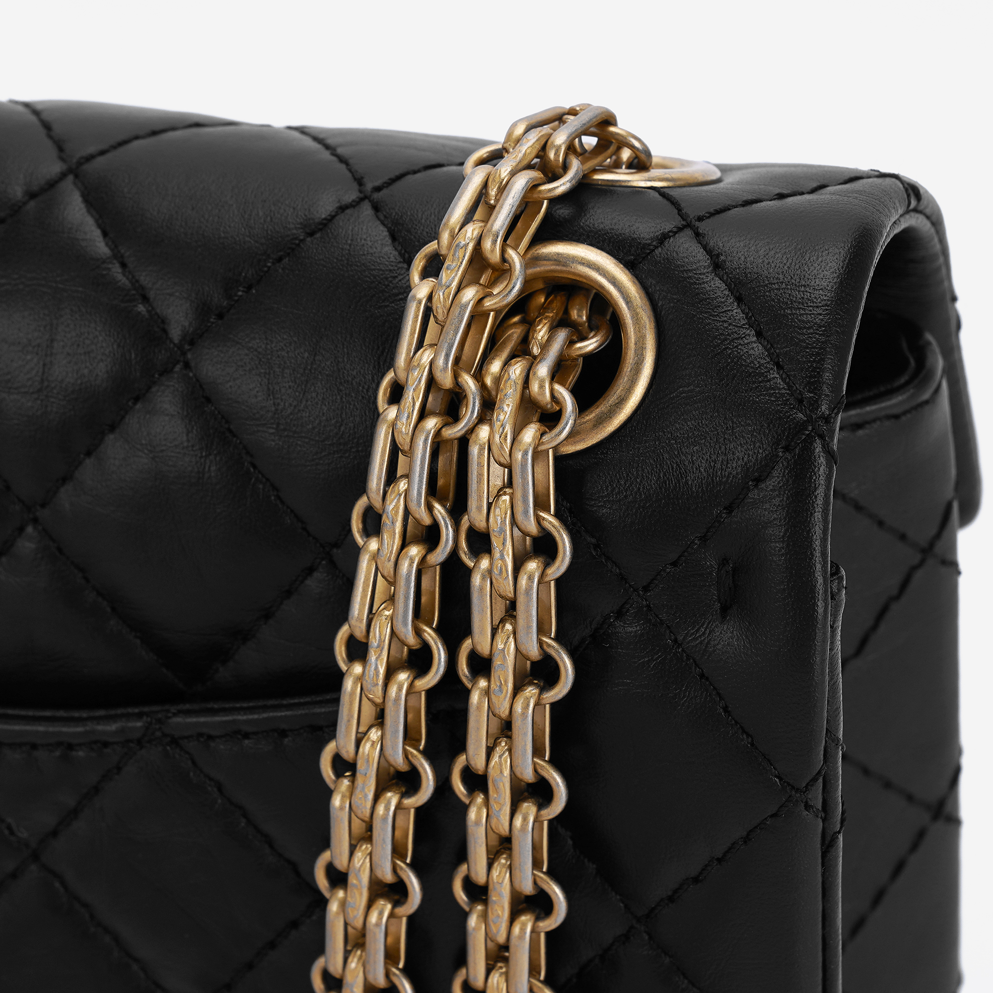 Chanel Mini 2.55 Handbag Aged Calfskin & Gold Black