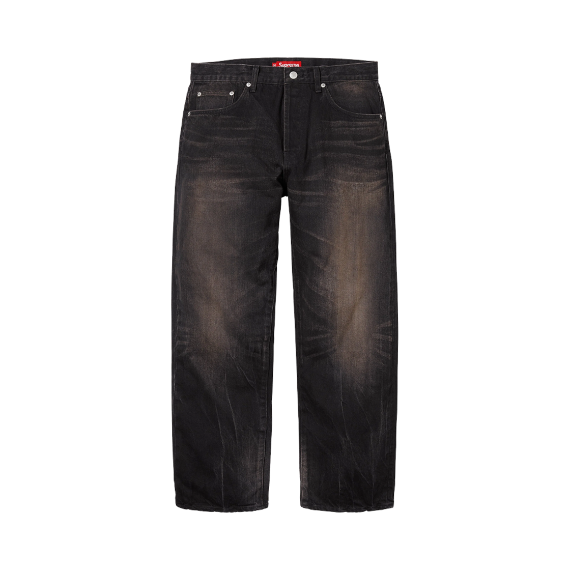 Supreme Distressed Loose Fit Selvedge Jean Washed Black - 25SS