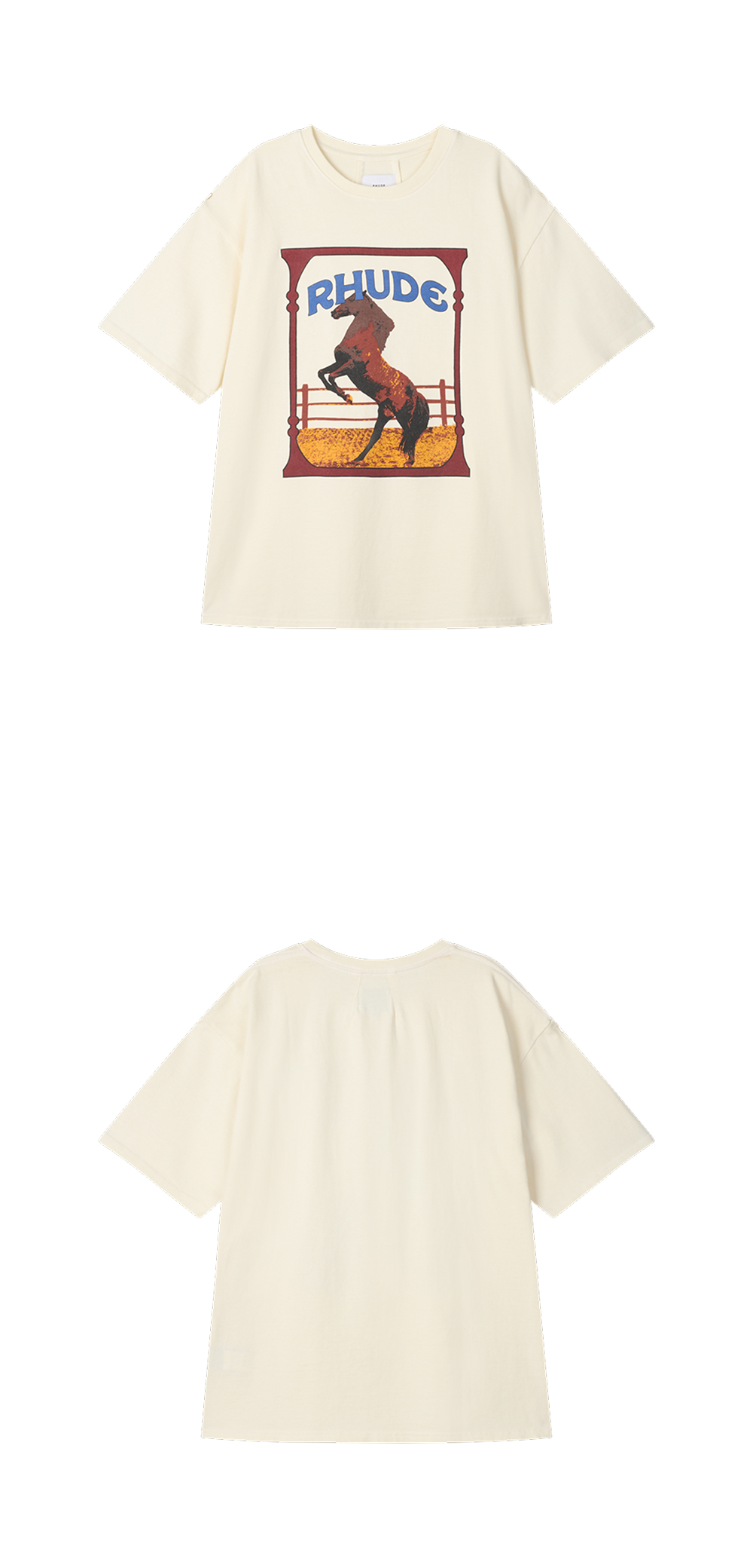 과감한 프린팅이 인상적인 루드의 캐드리 티 빈티지 화이트입니다. - 커스텀 빈티지 핏 코튼 티셔츠 - 드롭 숄더 디자인 - 전면의 브랜드 시그니처 그래픽