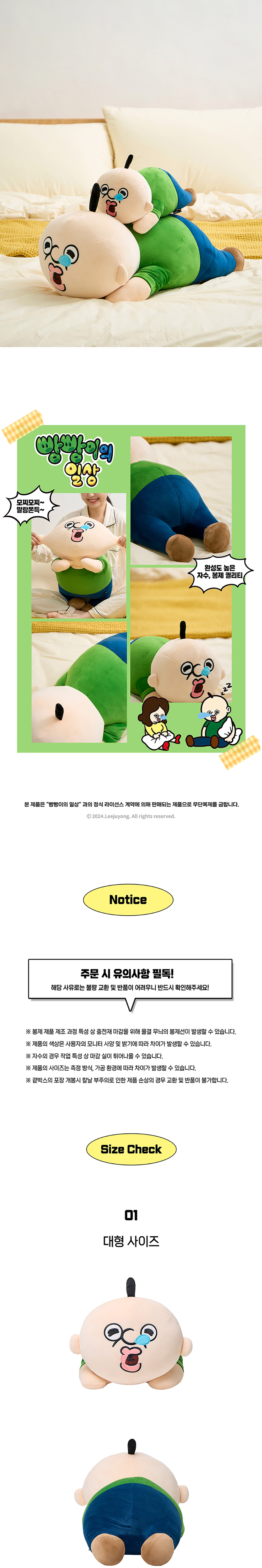 드림씨앤씨 빵빵이 모찌 라잉 중형 인형 필로우 30cm