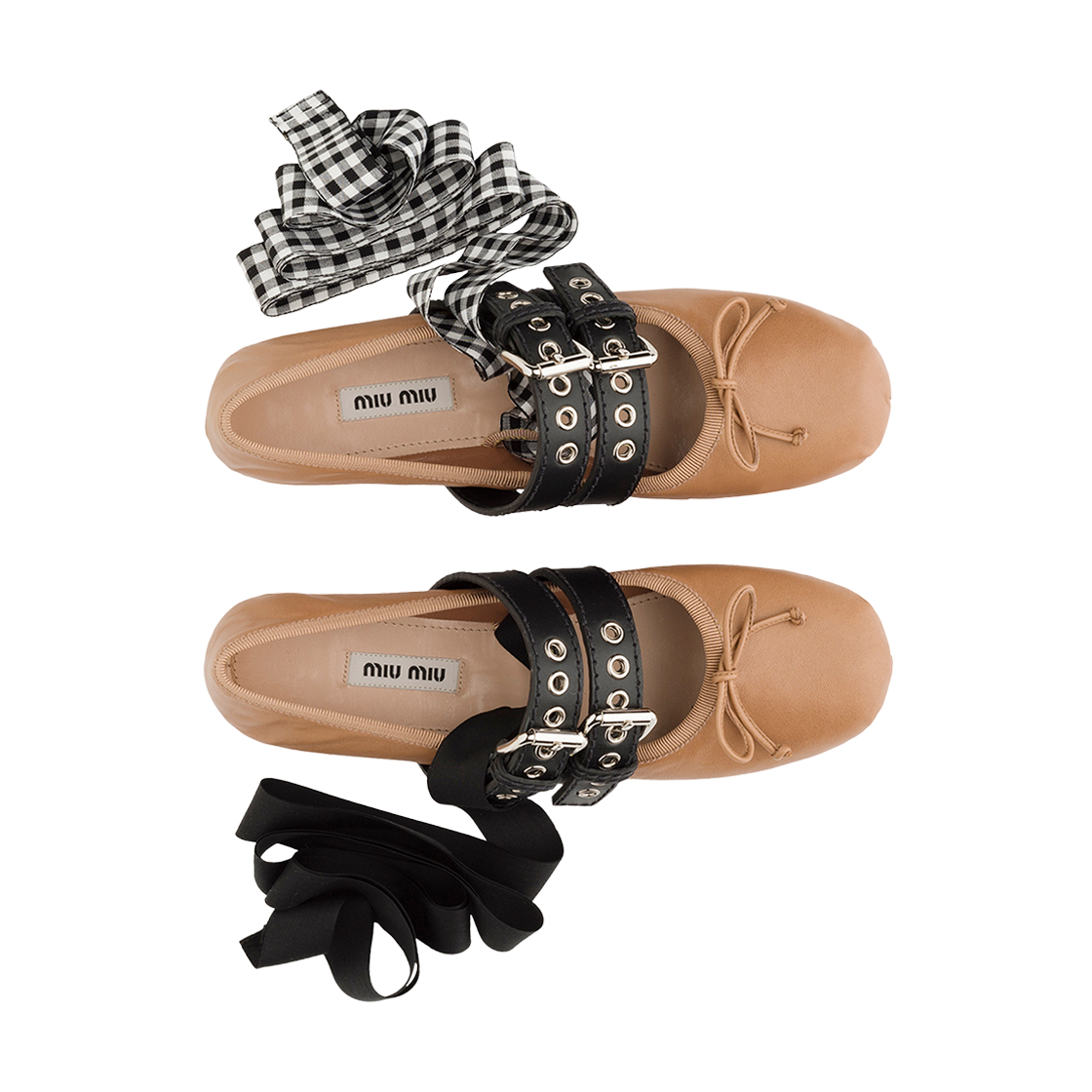 (W) Miu Miu Nappa Leather Ballerinas with Belts Nude Nero