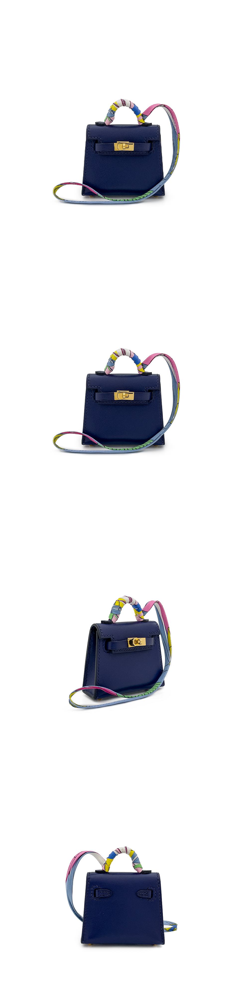 Hermes Tadelakt Kelly Bag Charm Bleu Sapphire Gold