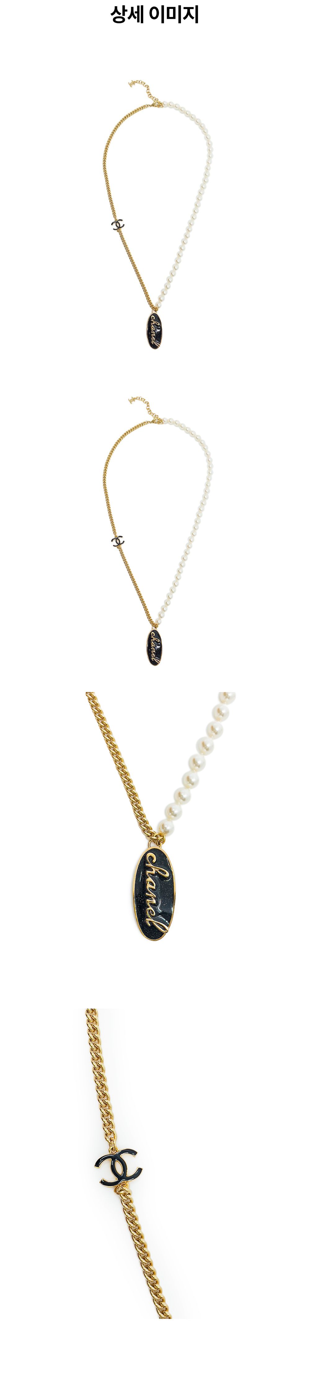 샤넬 24C 진주 체인 네크리스 펄리화이트/블랙 금장