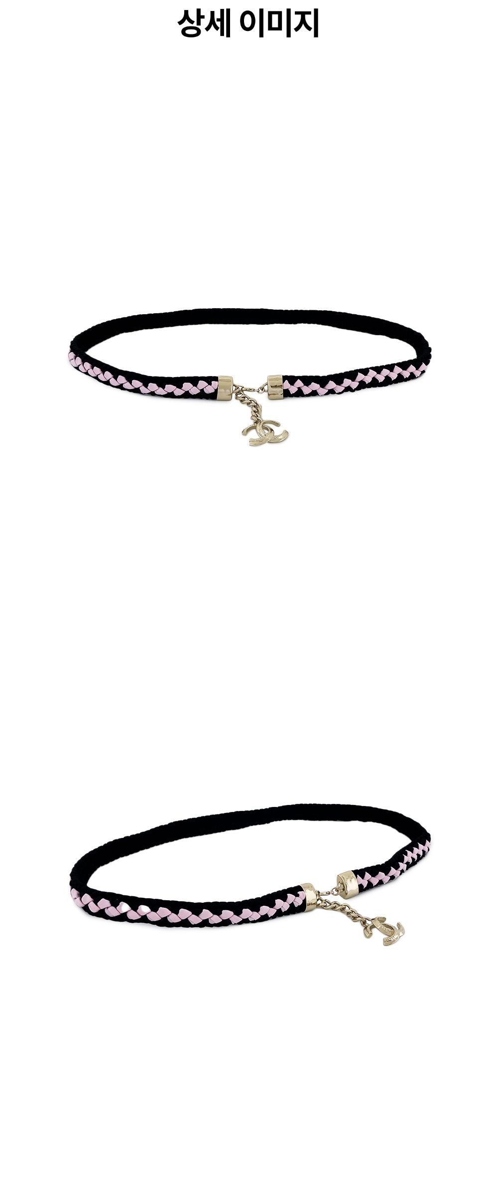 샤넬 CC로고 밴딩 벨트 핑크/블랙 샴페인골드