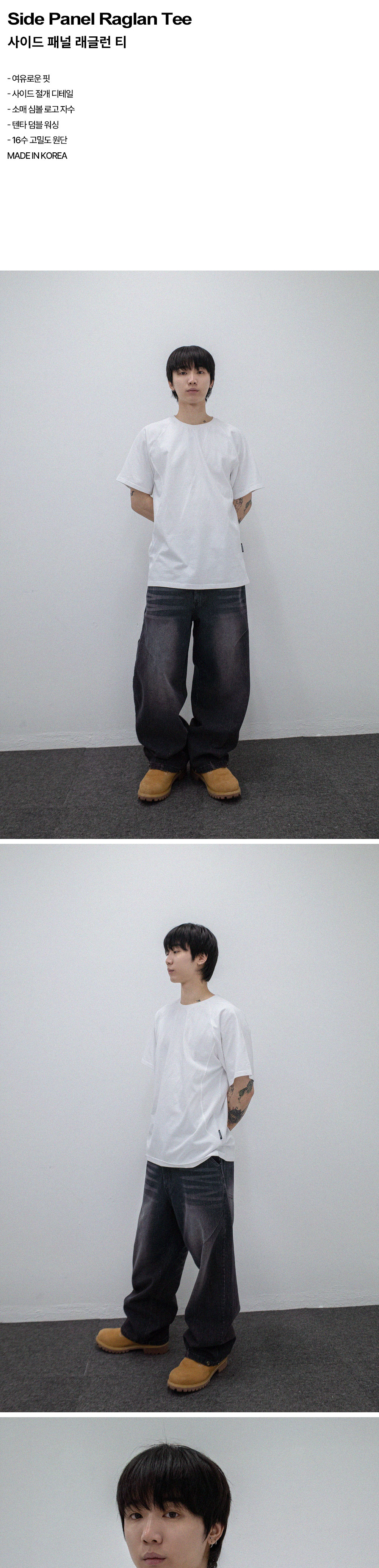 비피투디스오더 사이드 패널 래글런 티 화이트