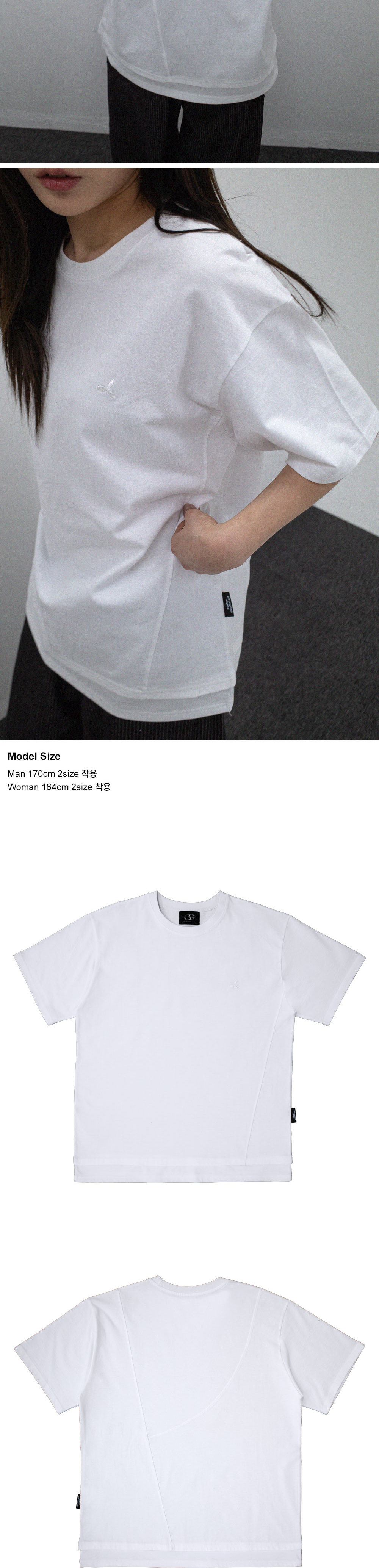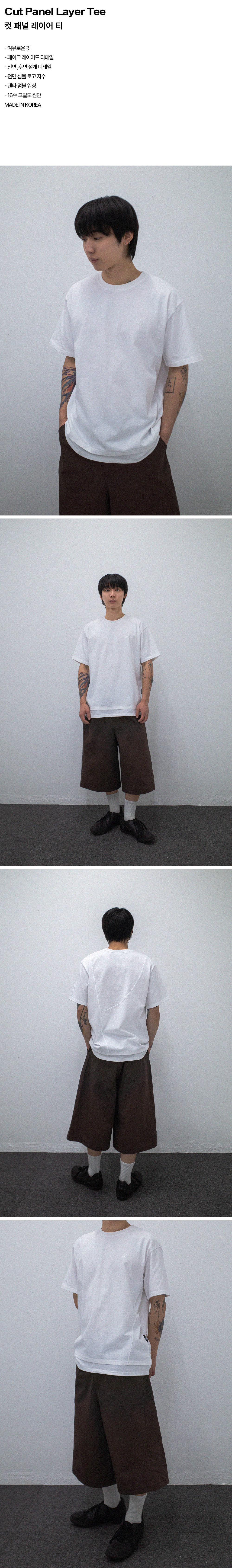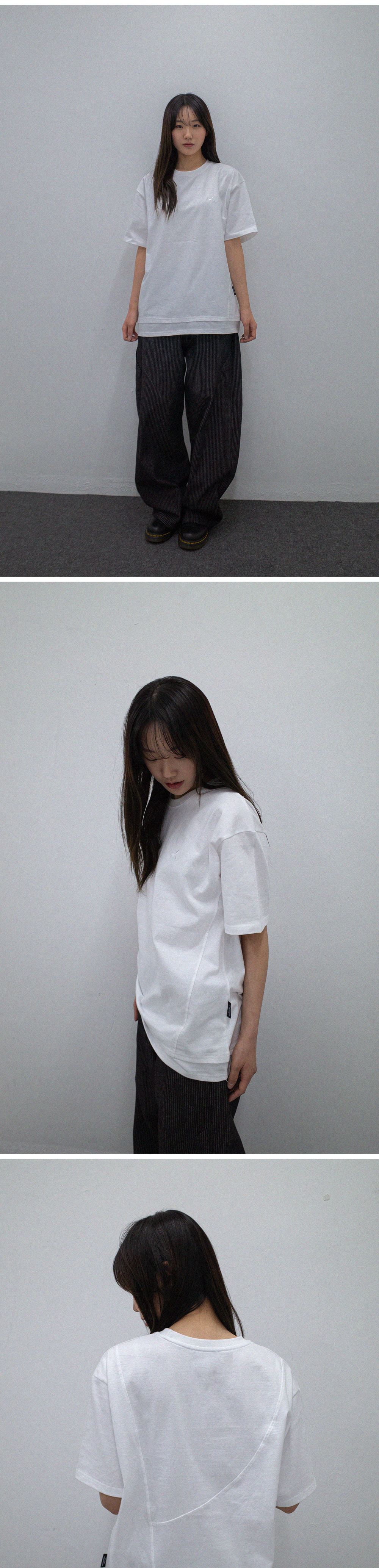비피투디스오더 컷 패널 레이어 티 화이트