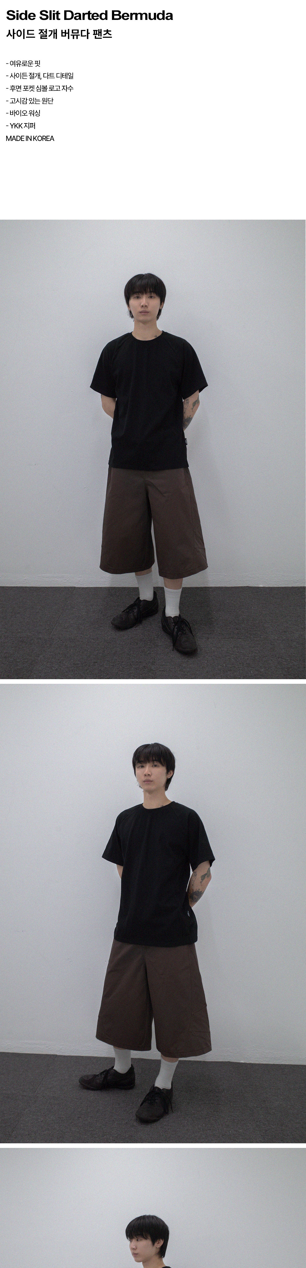 비피투디스오더 사이드 절개 버뮤다 팬츠 브라운