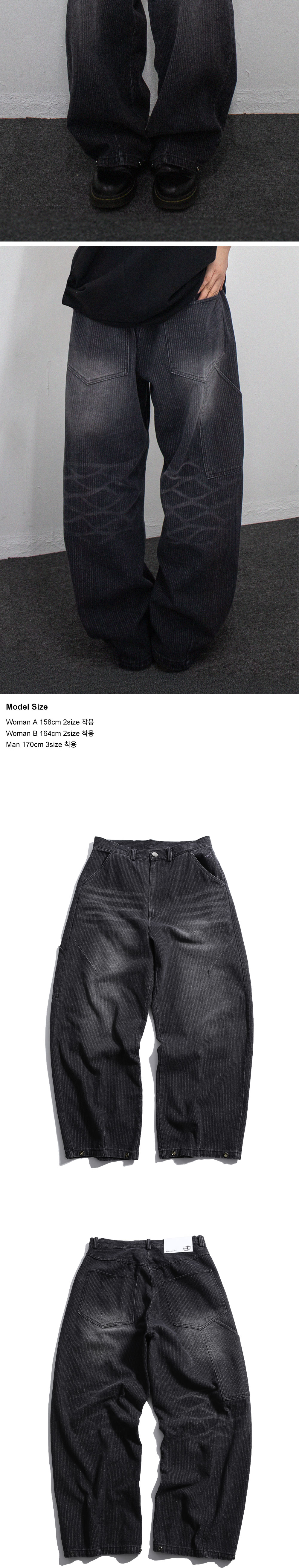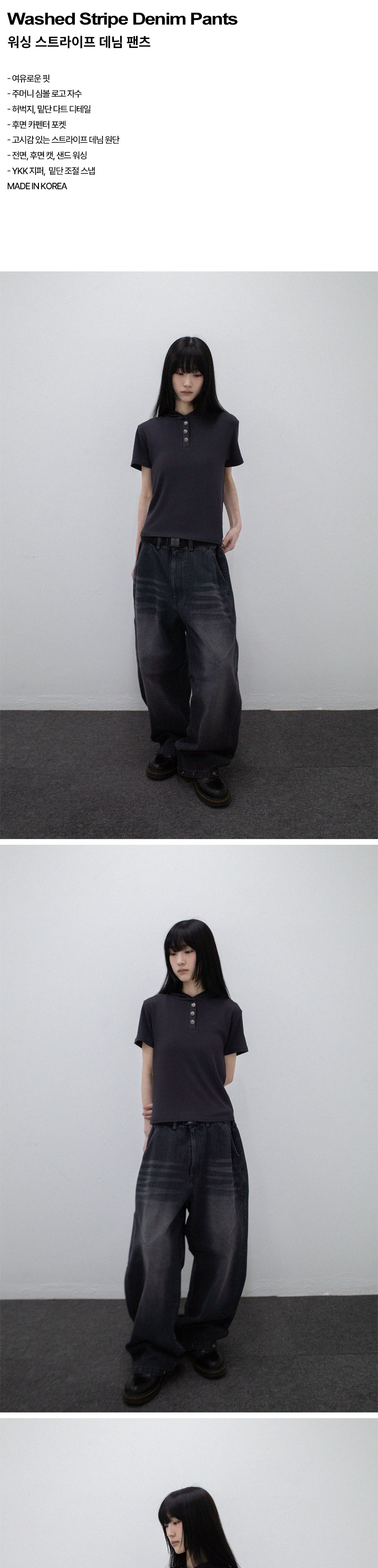비피투디스오더 워싱 스트라이프 데님 팬츠 블랙