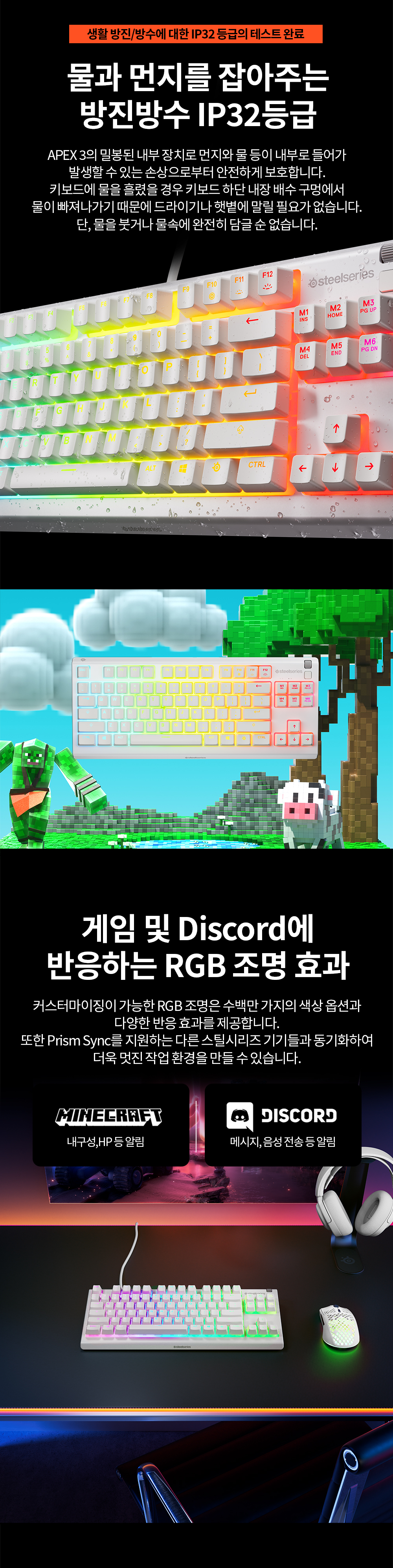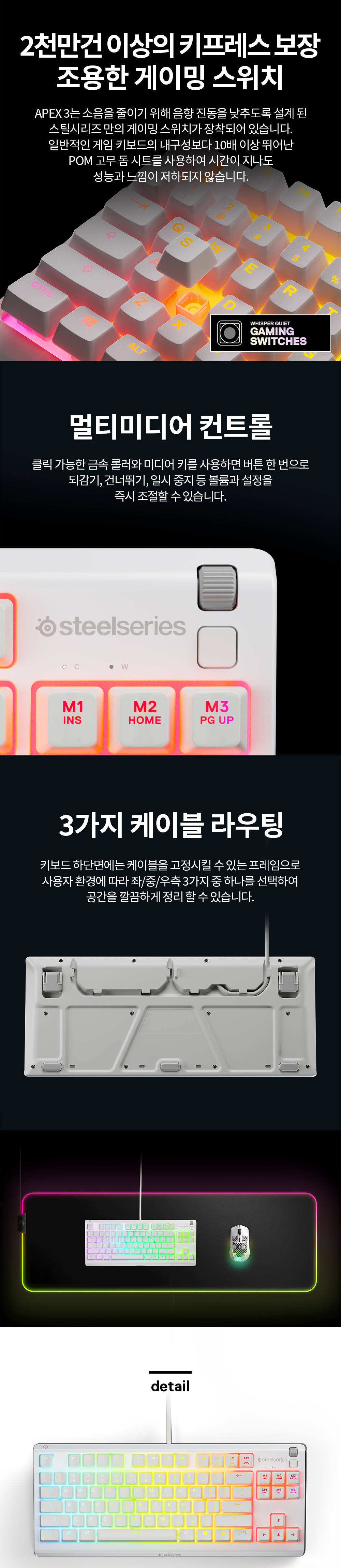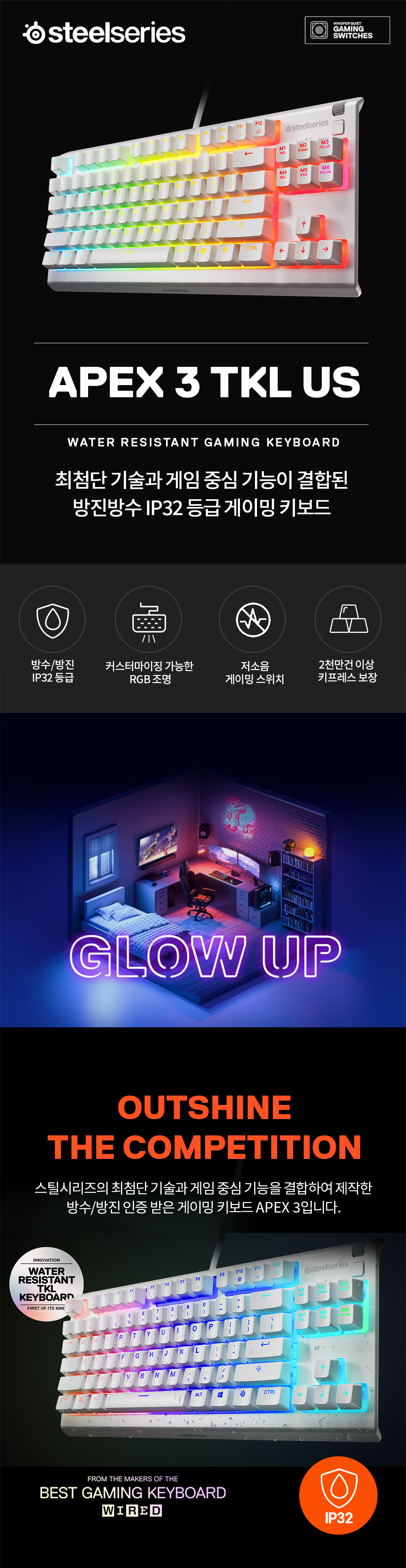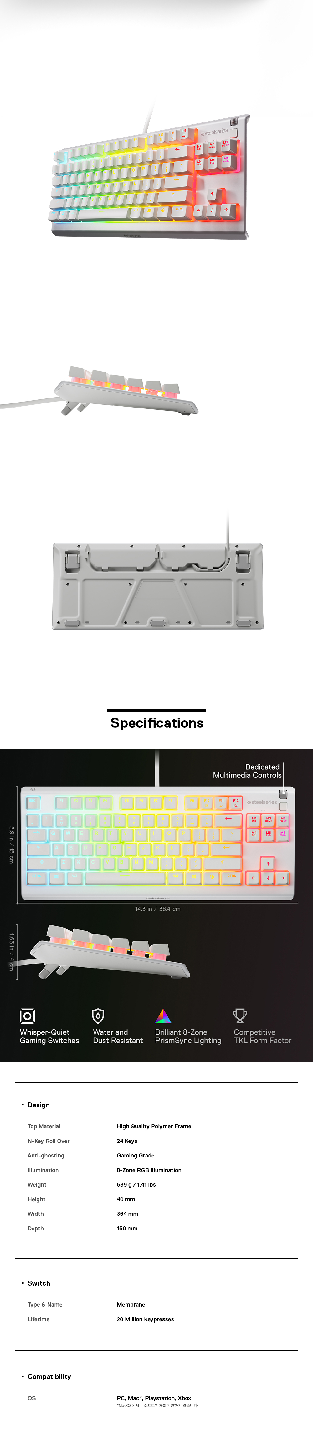 스틸시리즈 Apex 3 TKL White US 저소음 게이밍 키보드