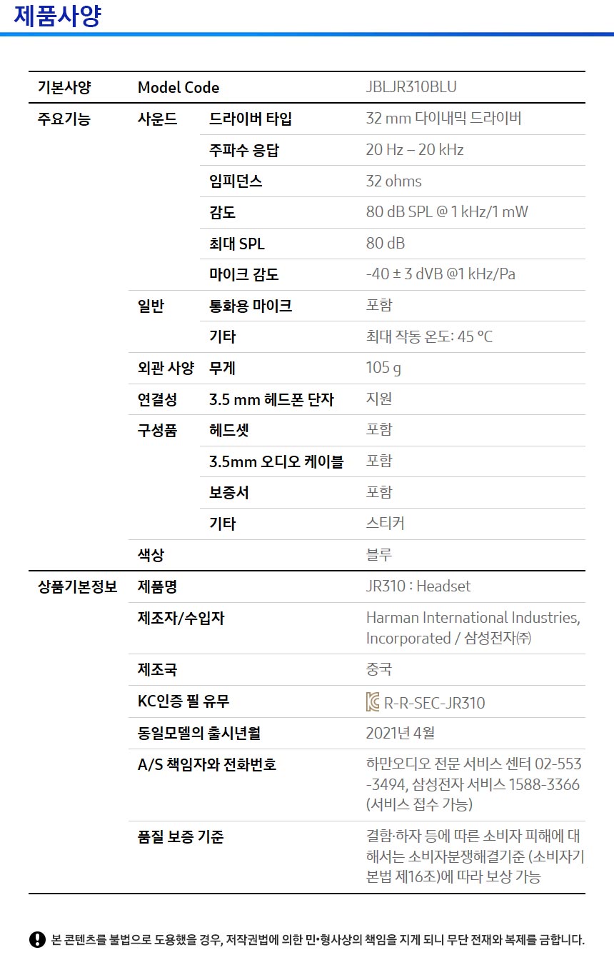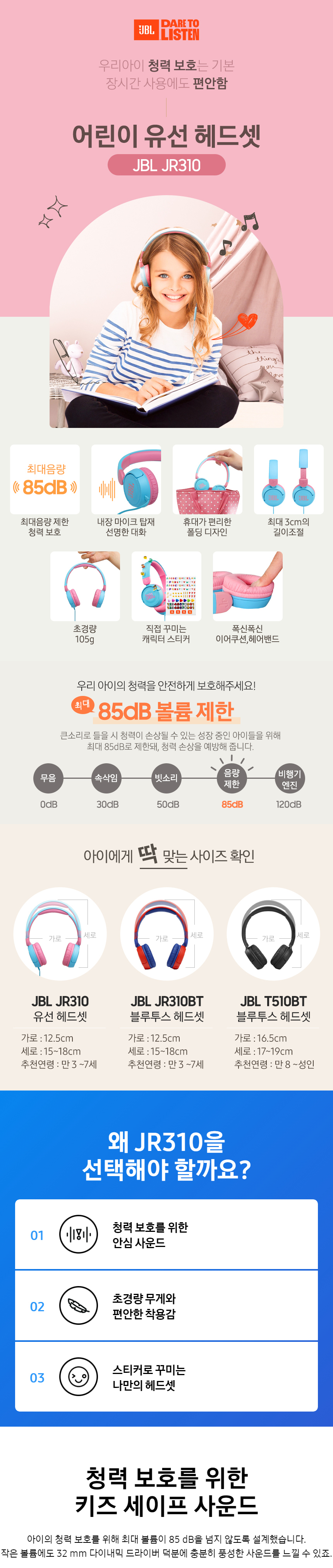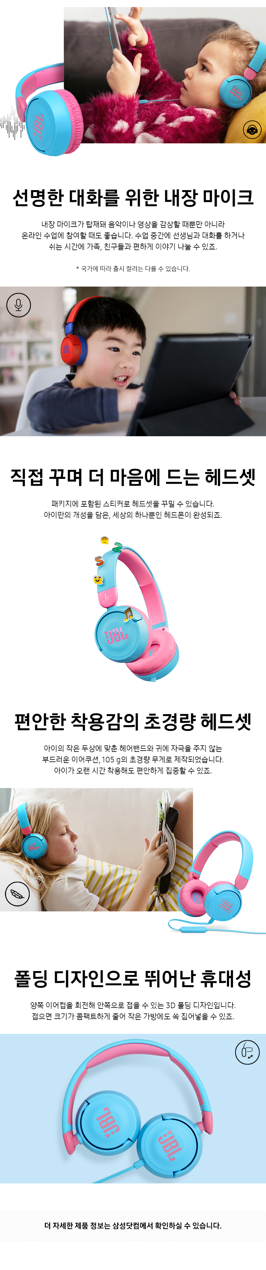 제이비엘 JR310 유선 어린이 헤드폰 블루