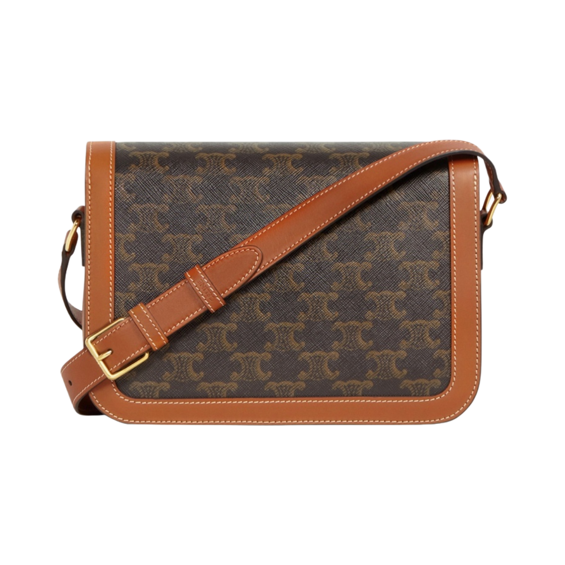 Celine Classique Triomphe Bag in Triomphe Canvas Calfskin Tan