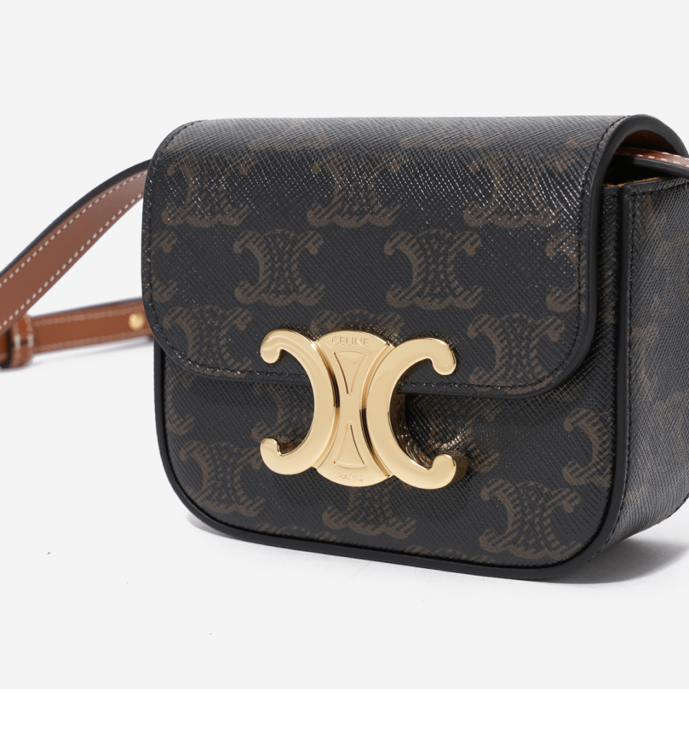 셀린느 미니 클로드 트리옹프 캔버스 카프스킨 탄