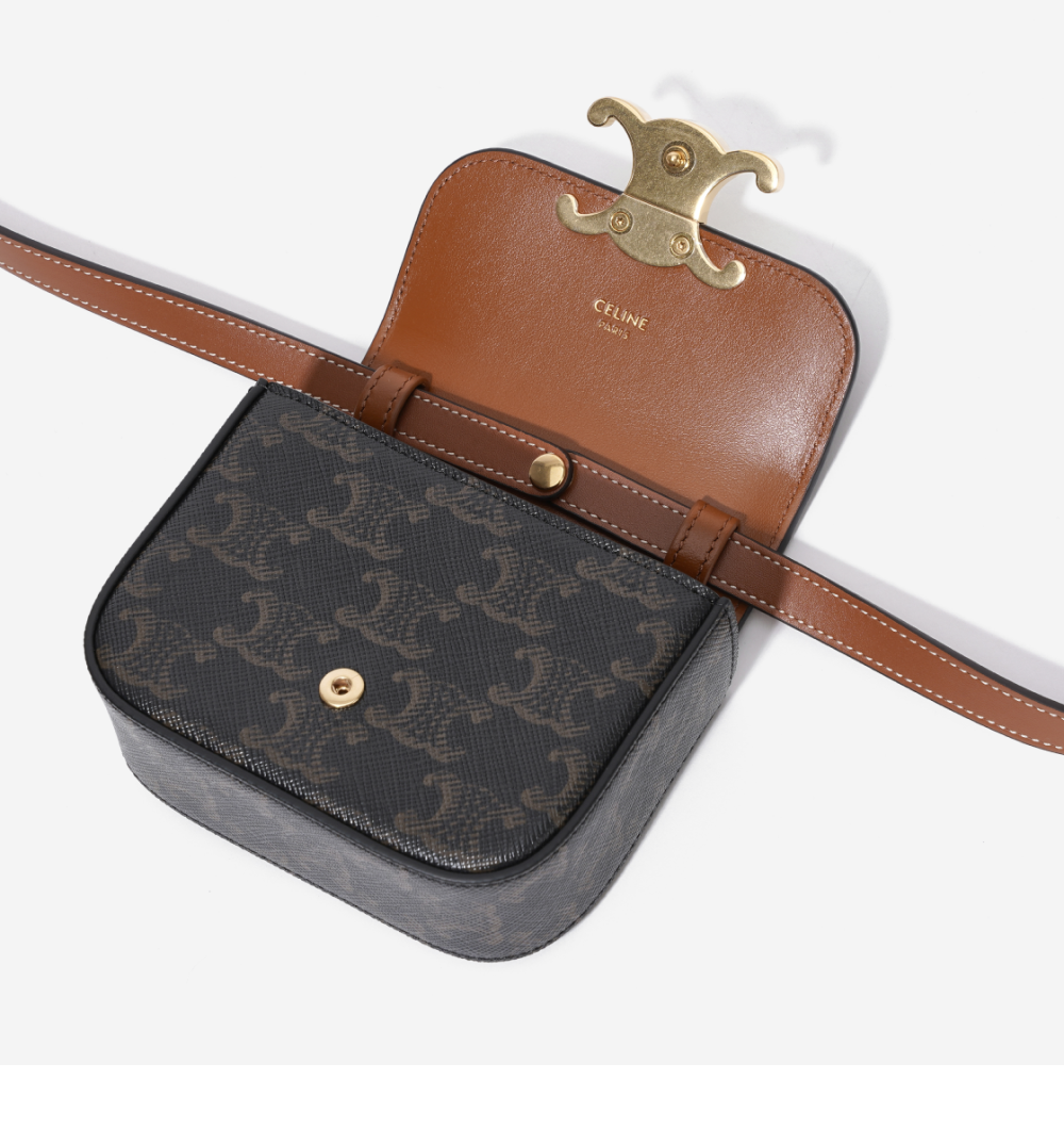 Celine Mini Claude in Triomphe Canvas Calfskin Tan