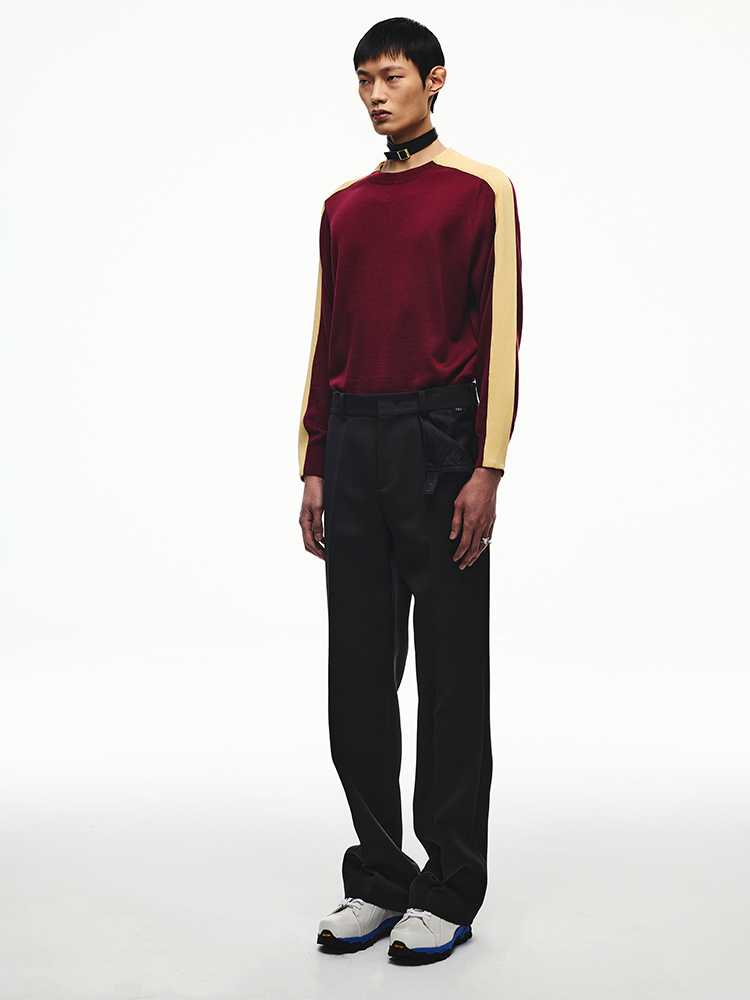 DESCRIPTION 유지 시그니처 슬릭 팬츠로 트윌 결의 최고급 원단을 사용하였습니다. 주머니 쪽에 레이어드 되며 연출되는 디테일에 로고가 부착되어 유니크함을 주었습니다. 스트레이트 핏으로 어느 체형에도 잘 어울리는 기장감과 디자인입니다. SIZE GUIDE S SIZE / 허리 83.6cm 힙 103cm 허벅지 65.3cm 밑단 46.5cm 앞밑위 30.2cm 뒷밑위 40.7cm 총기장 107.6cm M SIZE /허리 88.6cm 힙 108cm 허벅지 67.8cm 밑단 51.5cm 앞밑위 30.8cm 뒷밑위 41.3cm 총기장 112.6cm L SIZE/ 허리 93.6cm 힙 113cm 허벅지 70.3cm 밑단 56.5cm 앞밑위 31.4cm 뒷밑위 41.7cm 총기장 117.6cm 모델 착용 사이즈 : S SIZE DETAIL Fabric/Care WOOL 50% POLYESTER 50% Made in Korea