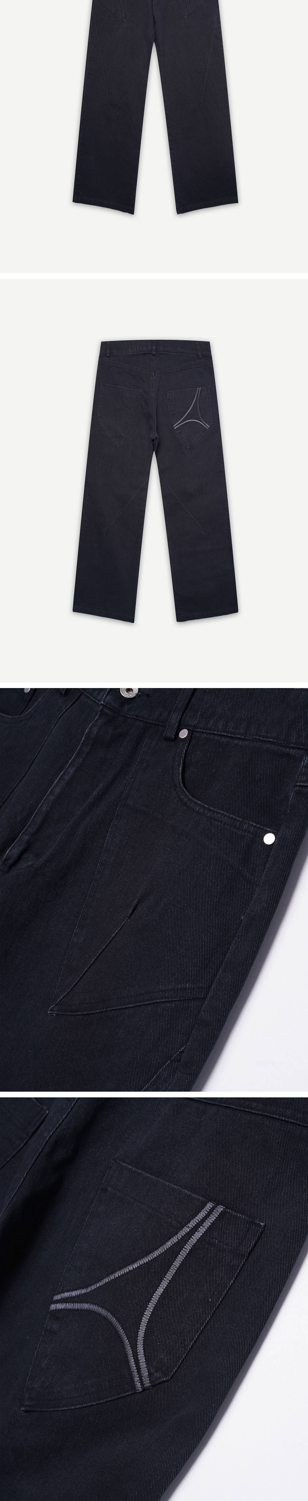 -스트레이트 핏 -YKK 지퍼 사용 -카치온 소재, 바이오 워싱 -앞면 아웃포켓 디테일 -앞면 사이드 다트 디테일 -뒷면 시그니처 심볼 자수 -뒷면 사이드 다트 디테일