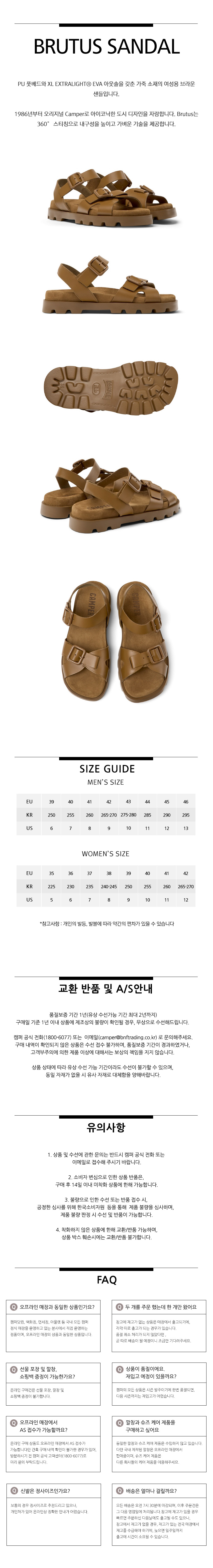캠퍼 여성 브루투스 샌들 샌들 브라운