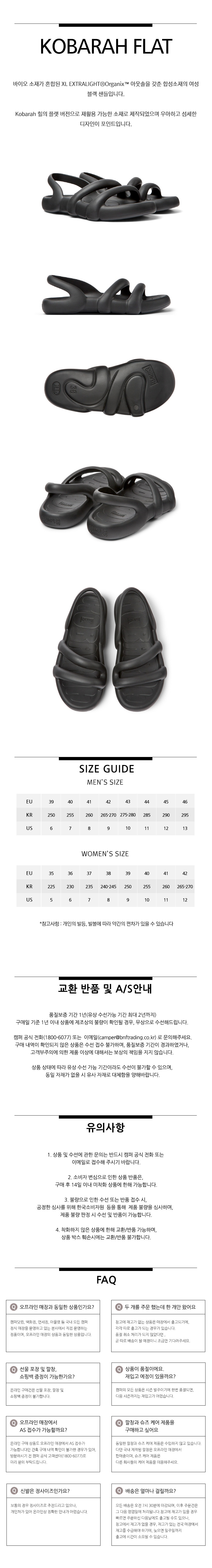 캠퍼 여성 코바라 플랫슈즈 샌들 블랙