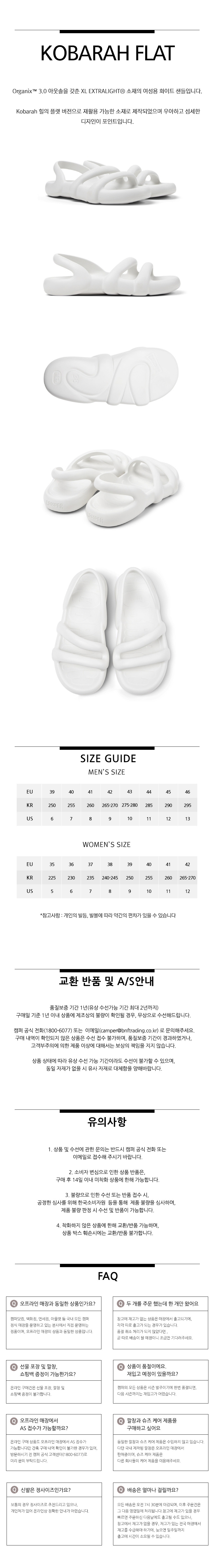 캠퍼 여성 코바라 플랫슈즈 샌들 화이트