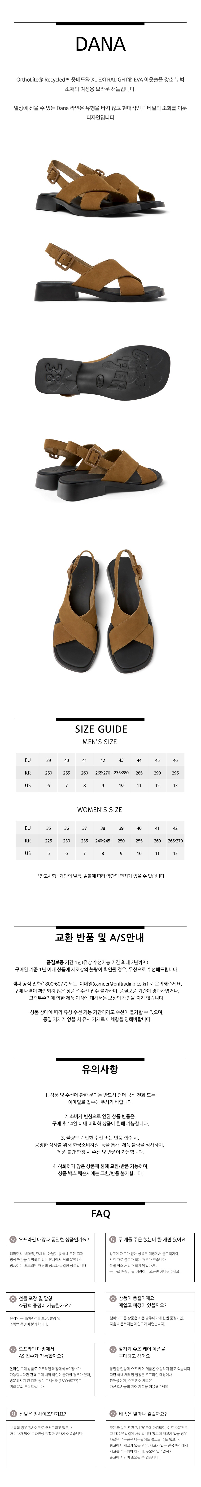 캠퍼 여성 다나 샌들 브라운
