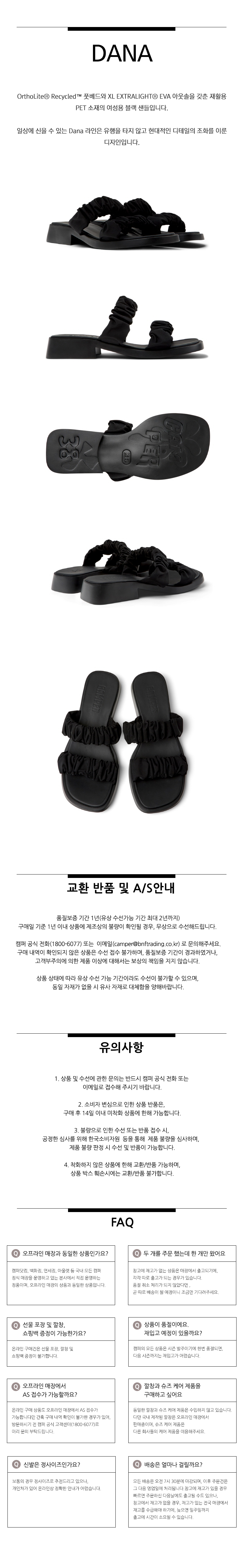 캠퍼 여성 다나 슬리퍼 블랙