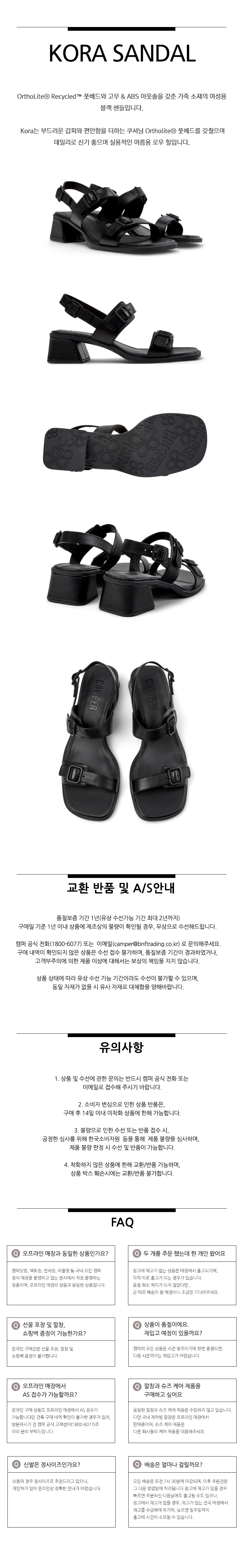 캠퍼 여성 코라 샌들 샌들 블랙