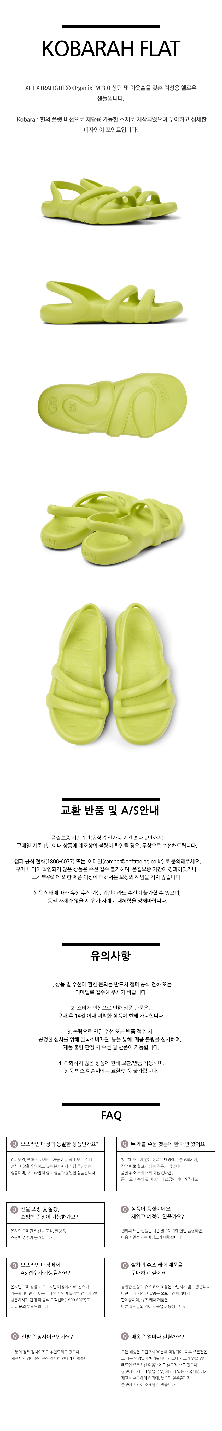 캠퍼 여성 코바라 플랫슈즈 샌들 네온