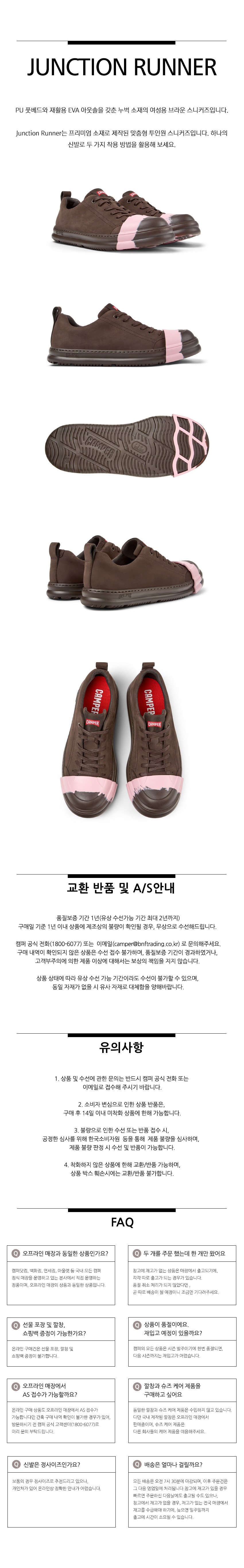 캠퍼 여성 정션 러너 스니커즈 다크 브라운