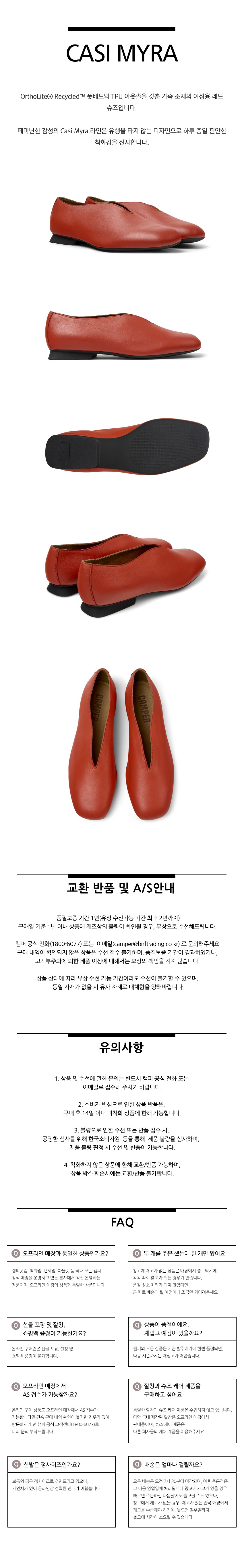 캠퍼 여성 카시미라 플랫슈즈 레드