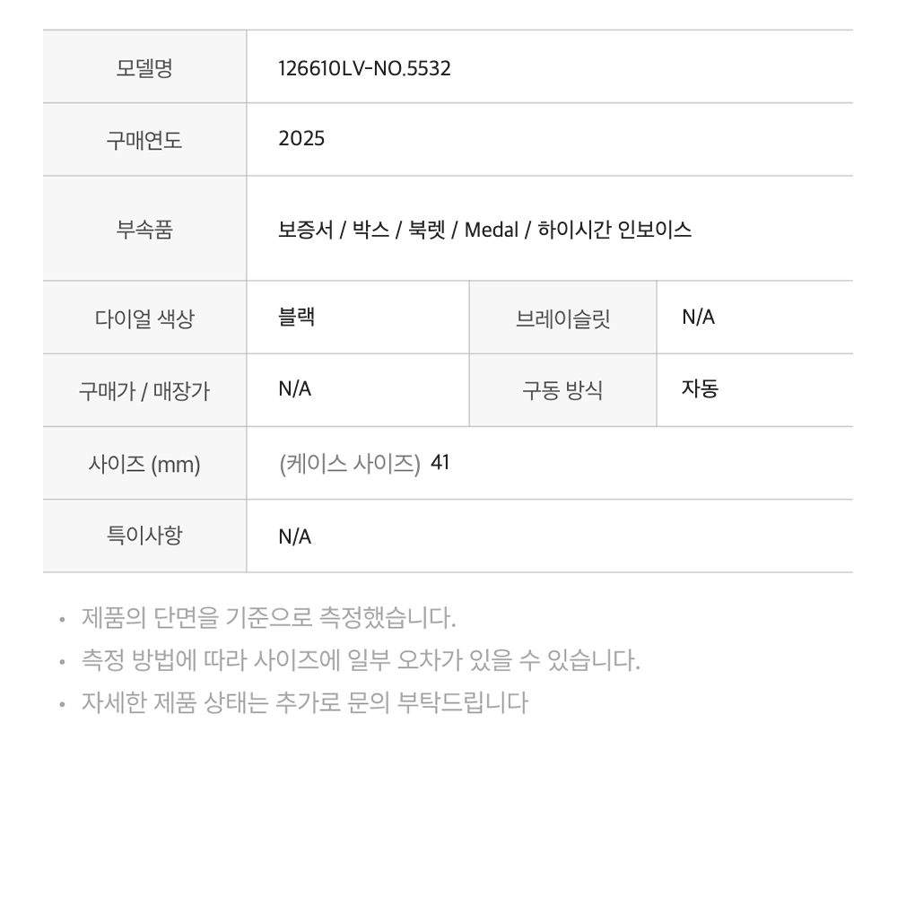 롤렉스 서브마리너 41-126610LV 블랙 바+도트 오이스터