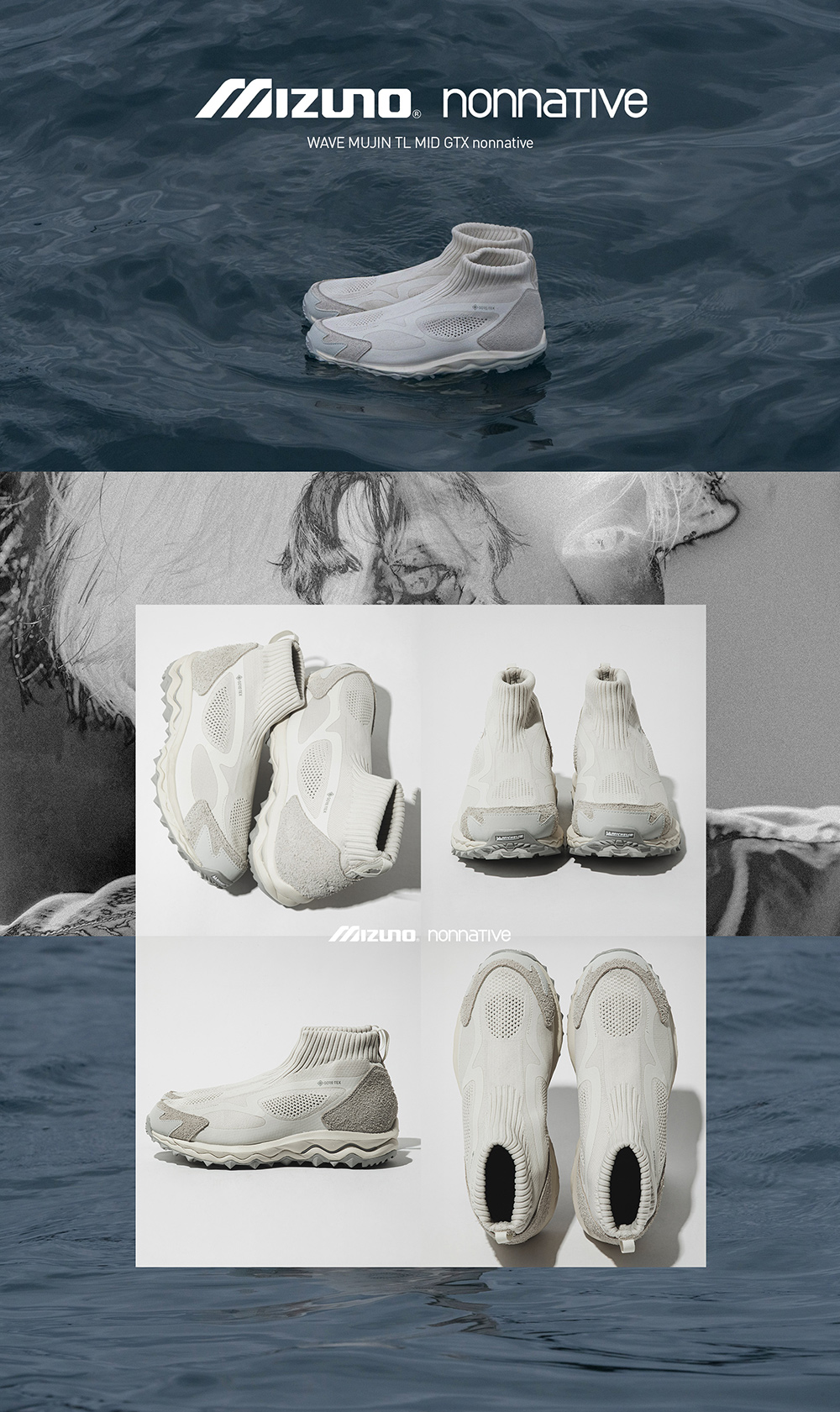 Nonnative와 네 번째로 진행된 협업 제품으로 기존 WAVE MUJIN TL GTX에서 목형태를 추가하여 새로운 스타일로 탄생한 협업 슈즈입니다.