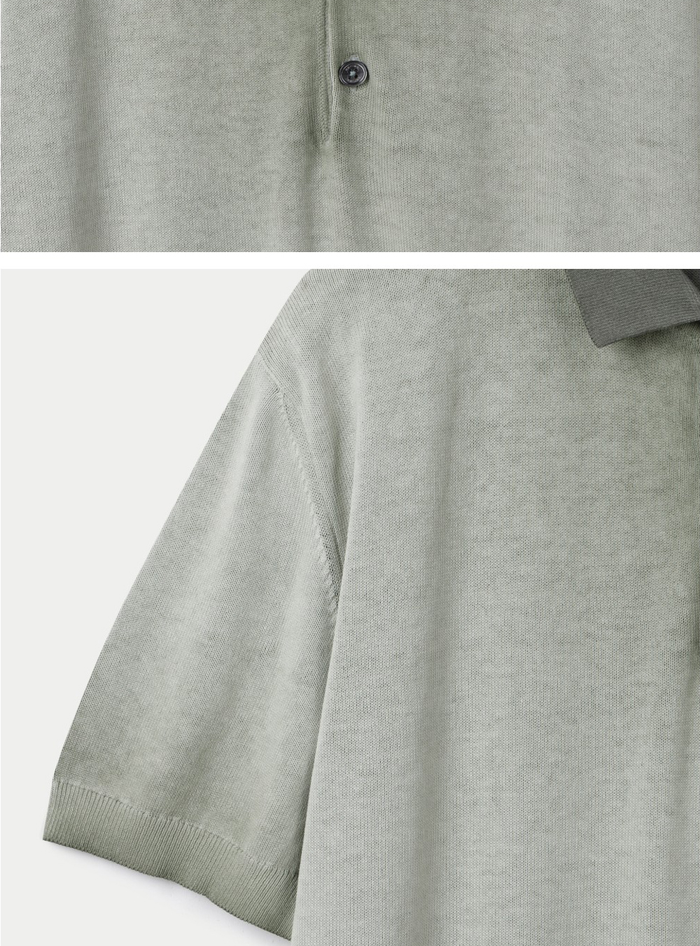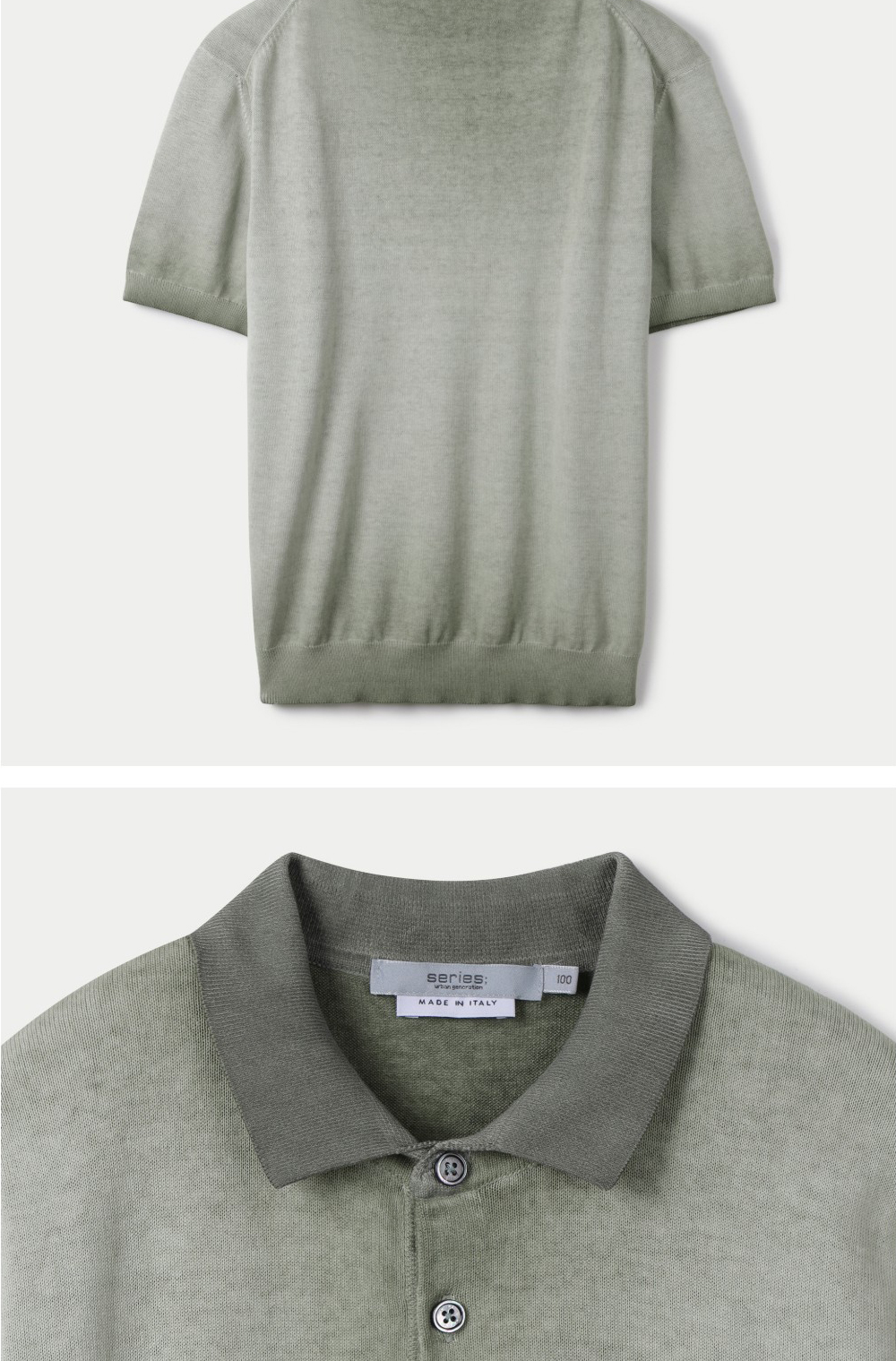 시리즈 이탈리 메이드 다잉 하프 슬리브 폴로 스웨터 카키