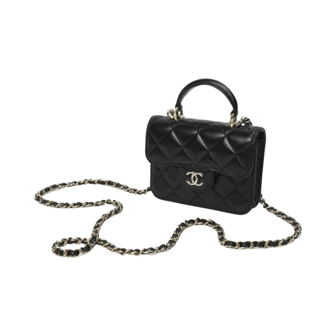 샤넬 체인 플랩 동전 지갑 램스킨 & 골드 메탈 블랙