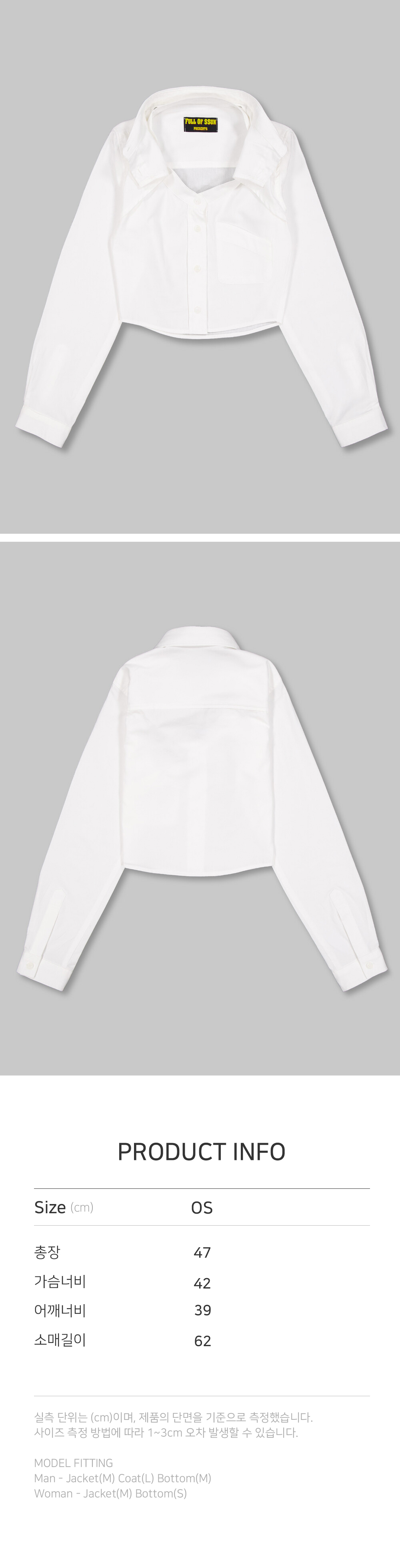 본 제품은 주문제작 제품으로 주문 후 5~7 일 후 순차 발송됩니다. (주말/공휴일 제외) - FULLOFSSUN의 시그니쳐 더블 카라 (스탠다드카라, 만다린카라) 디테일의 옥스포드 원단의 여성 크롭 셔츠입니다. - 25SS 시즌 컨셉영화인 "제5원소"의 우주선 속 승무원의 의상을 모티브로 제작한 더블카라셔츠입니다.