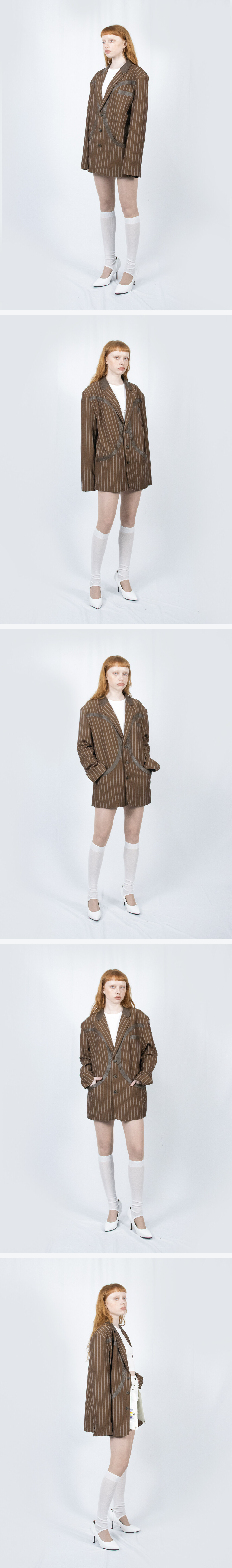 Full of Ssun Circle Leather Patch Blazer Stripe Brown