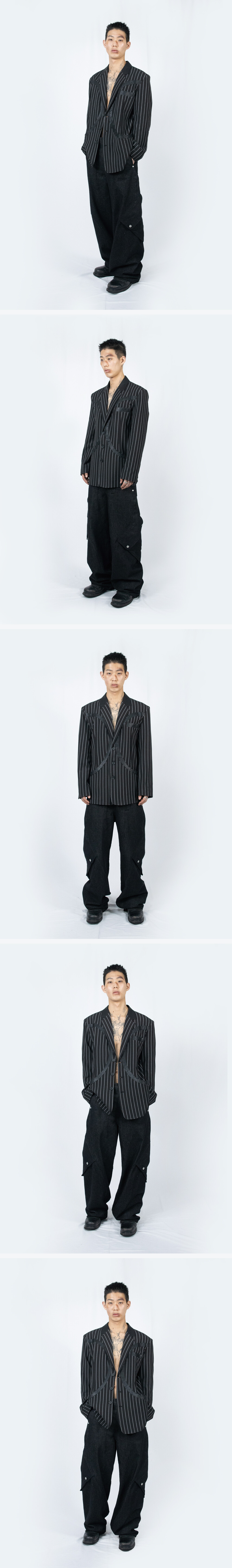본 제품은 주문제작 제품으로 주문 후 5~7일 후 순차 발송됩니다 (주말, 공휴일 제외) - FULLOFSSUN의 시그니쳐 써클 디테일이 레더패치로 들어간 스트라이프 원단의 블레이져 입니다. - 25SS 시즌 컨셉영화인 "제5원소"의 주인공인 조그의 블레이져를 모티브로 제작한 블레이져입니다. - 써클디자인의 포켓