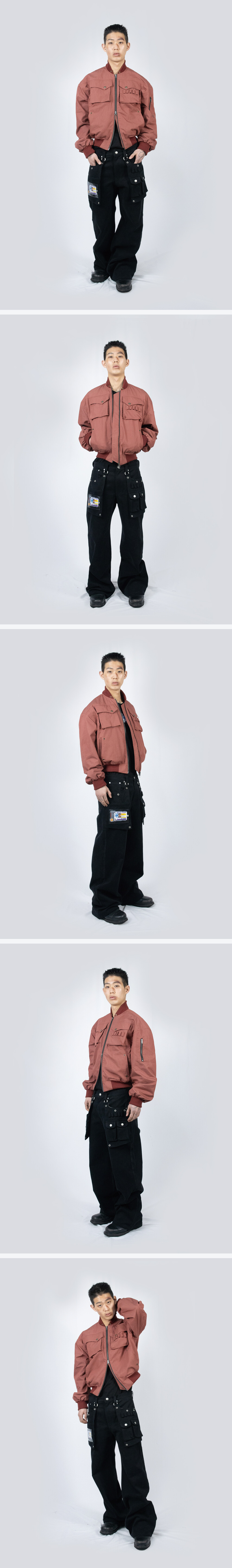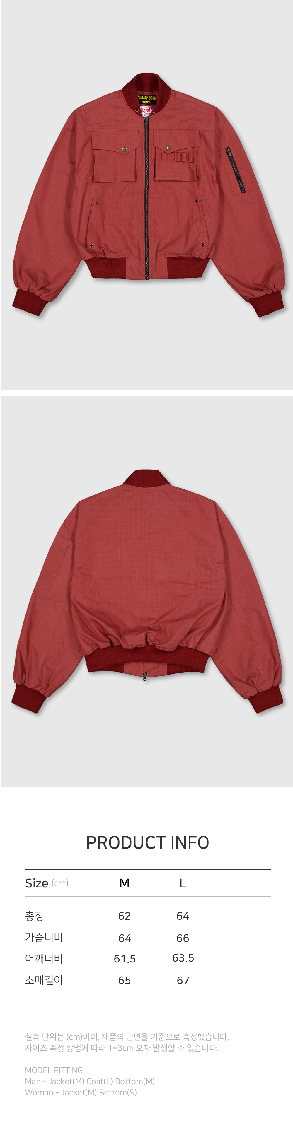 본 제품은 주문제작 제품으로 주문 후 5~7일 후 순차 발송됩니다 (주말, 공휴일 제외) - 립스탑 원단의 오버핏 실루엣의 크롭한 멀티포켓 봄버자켓입니다. - 25SS 시즌 컨셉영화인 "제5원소"의 주인공 코벤달라스의 자켓을 모티브로 제작한 자켓입니다. - 멀티포켓 디테일 - YKK사의 투웨이 지퍼 및 스냅 단추 부자재