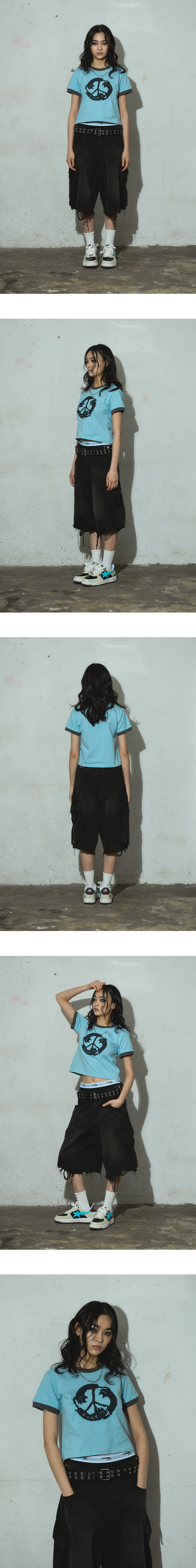 Dominant Purrfect Peace Ringer Crop T-Shirt Sky Blue